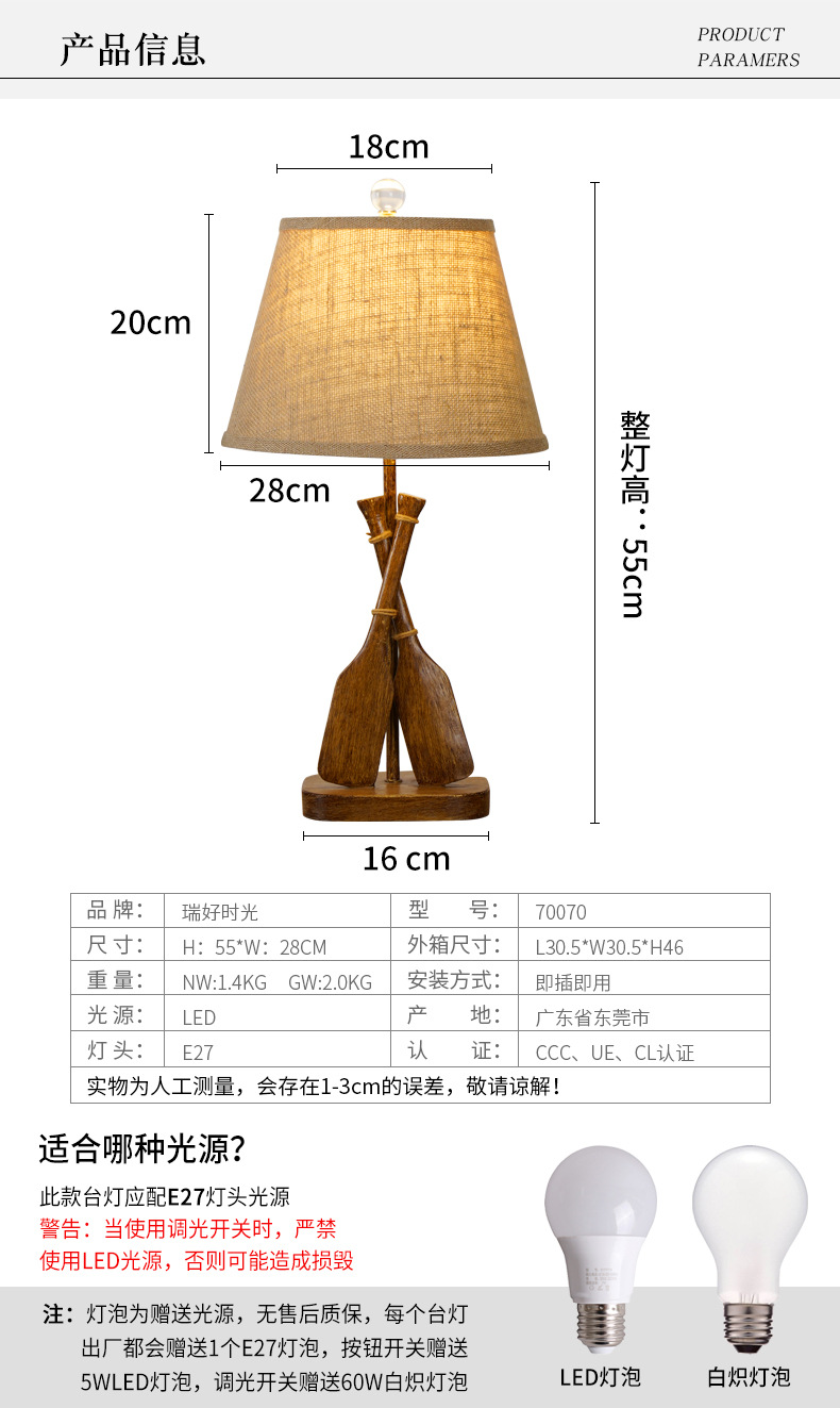 American country retro solid wood table lamp