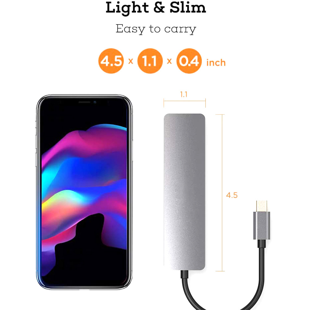 [Fast PD charging, easy to store] The USB Type C hub charges MacBook Pro or other Type-C devices when connected to the 60W Power Delivery port. Now, more and more devices and new Mac Pro support PD. This USB C hub is extremely compact, slim, portable, and takes up very little desktop space. Put the hub in your school bag for presentations, data collection, design projects, etc. It is an ideal device for daily carrying, commuting and traveling.