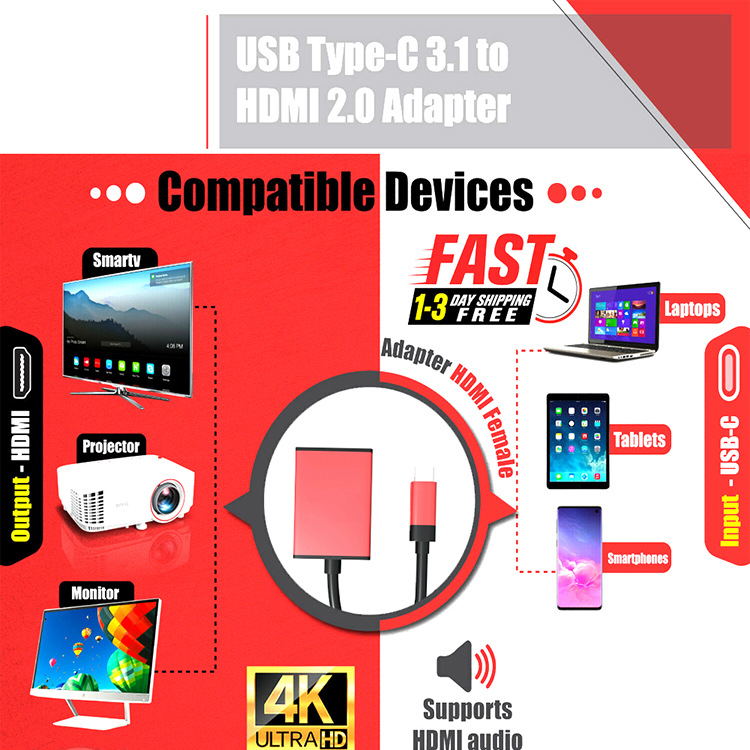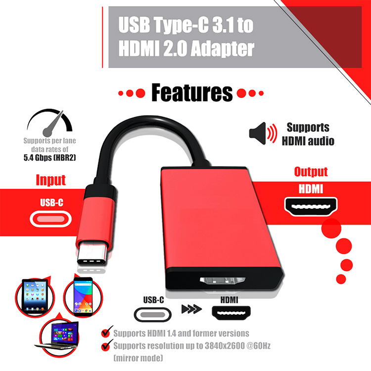 Aluminum alloy Type-C M To HDMI Type-c to HDMI HD converter 4K60Hz adapter cable