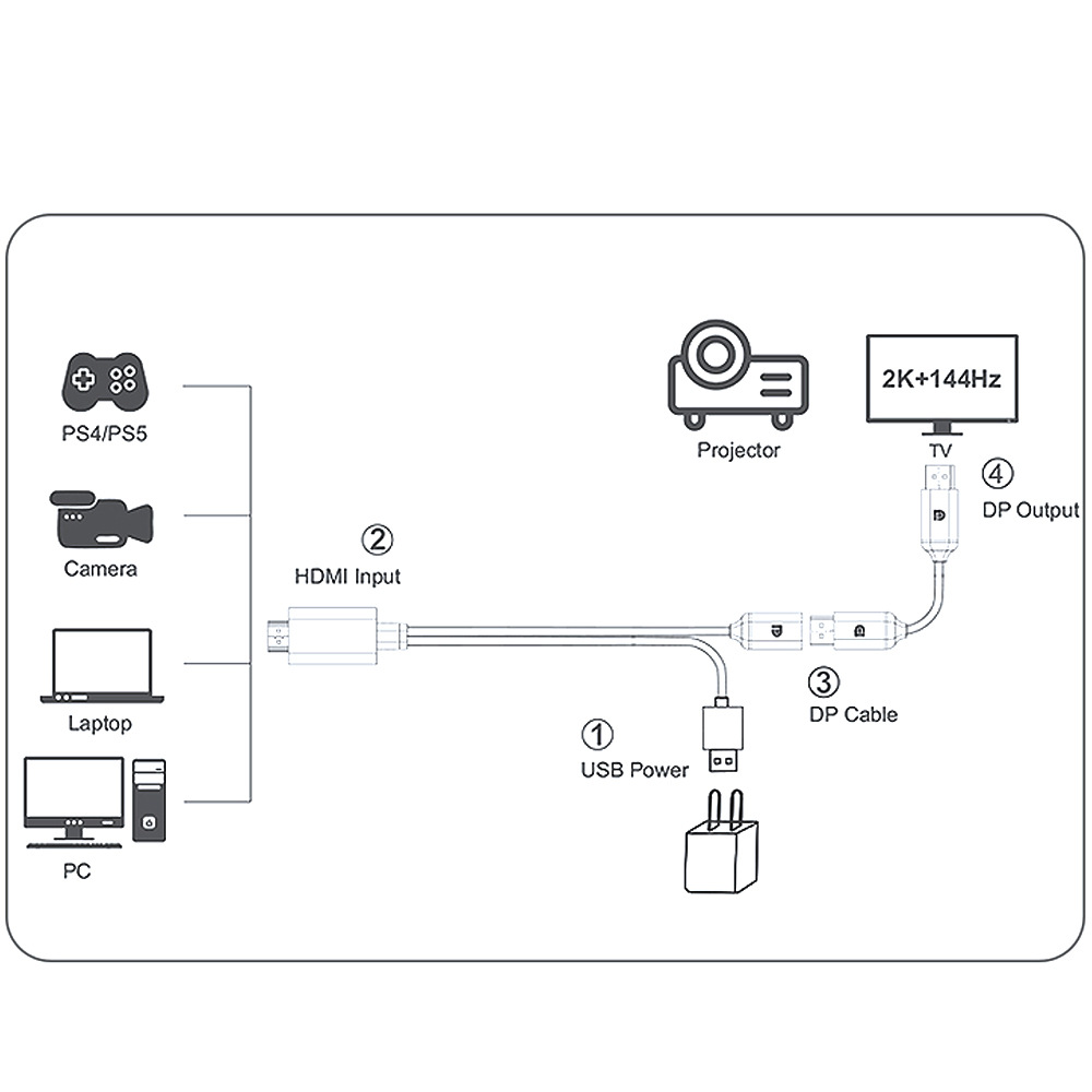 1. The HDMI signal output suitable for Win7/ Win8/Win8.1/Win10 desktop computers is converted to Displayport/Mini Displayport video signal input;