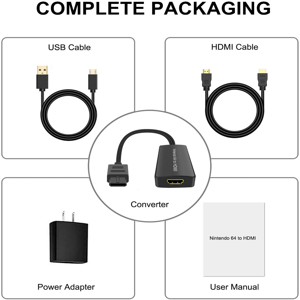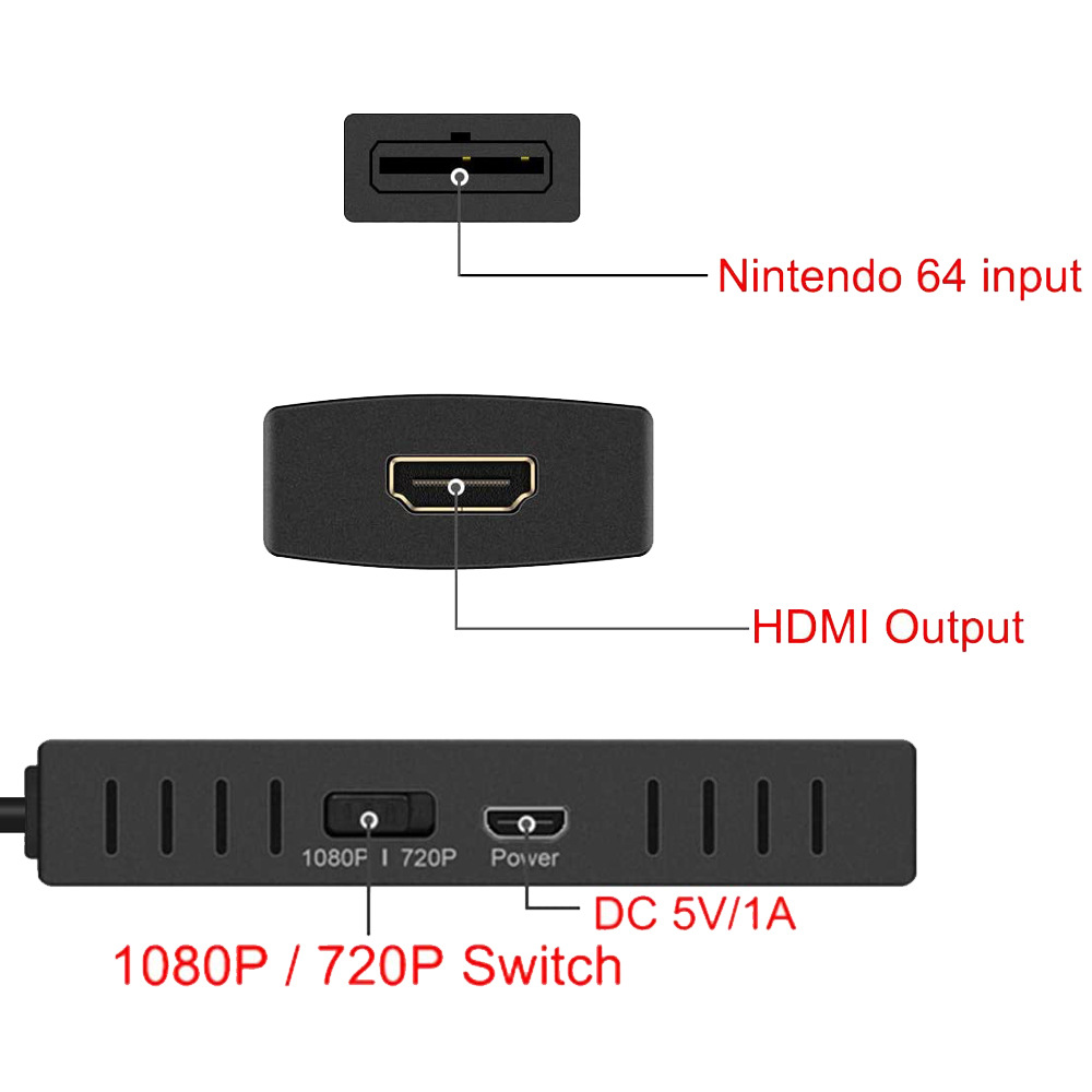 This Nintendo 64 to HDMI converter makes it easy to connect the Nintendo 64 console to the new HDMI TV input, eliminating cable confusion.