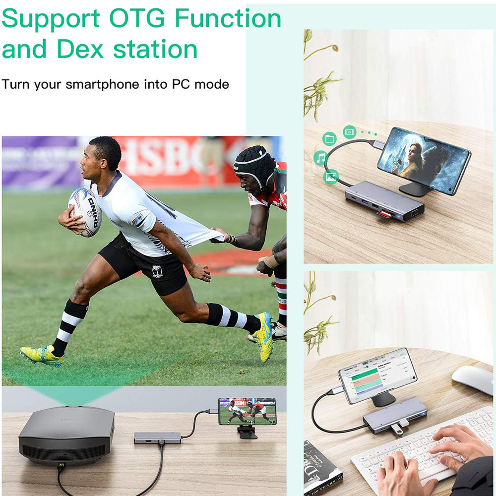 [Wide compatibility] This USB C docking station is compatible with Type-C devices (Note: The power port of the laptop is a type-c port): MacBook Pro 2019-2016, MacBook Air2019/2018/iMac 2019/ 2018, iMac Pro (21. 5 inch, 27inch), iPad Pro 2019/2018, Dell XPS 13&15“, Lenovo Yoga 5 Pro/ Yoga 900 13” ect. It also supports DEX Station that connects smartphones and displays via HDMI ports Function type c hub. Compatible models include Note 9/S8/S9/S10/S10/S20, Huawei Mate 20/P30 Pro, etc.