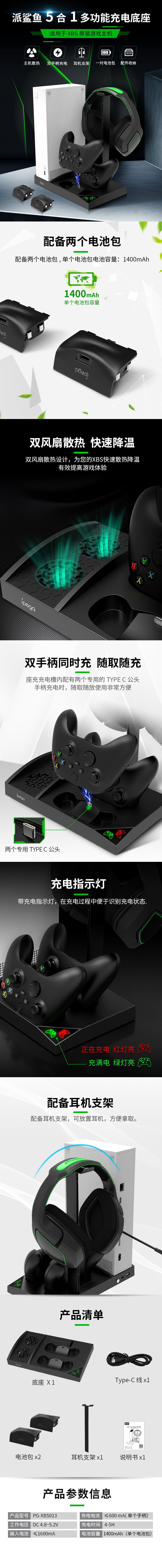 XBox series S multifunctional cooling base + dual battery handle charger + handle storage