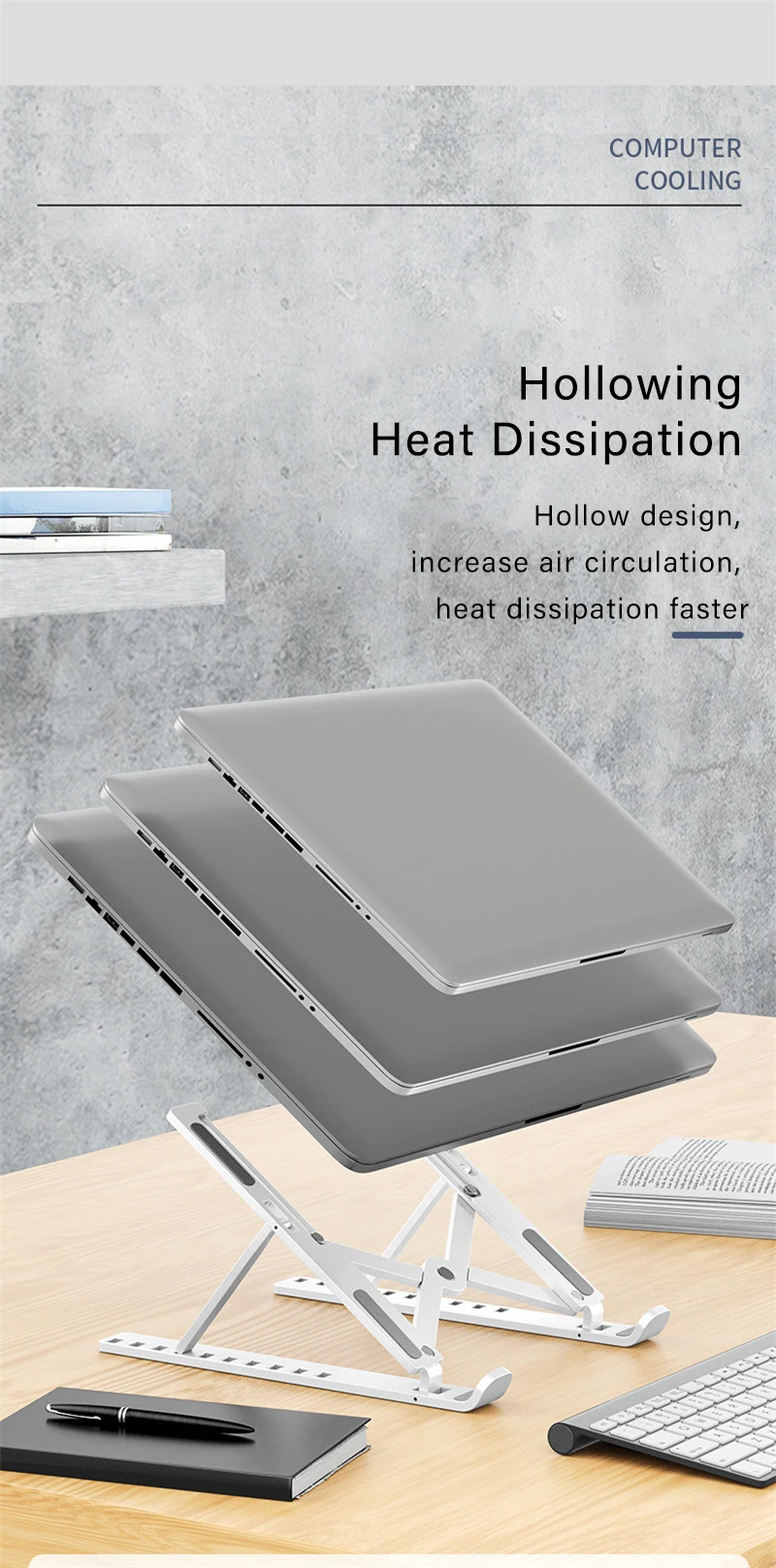 anti-slip pads can keep the laptop lifting board stable and protect the device/desktop surface after placement.