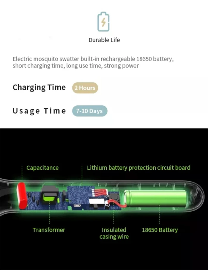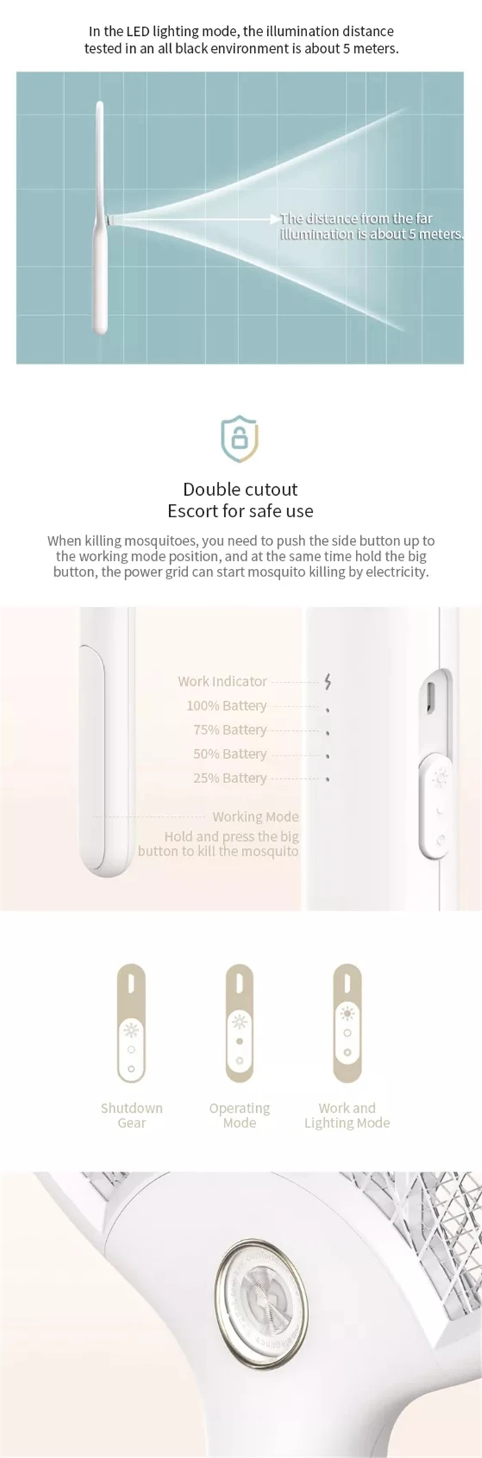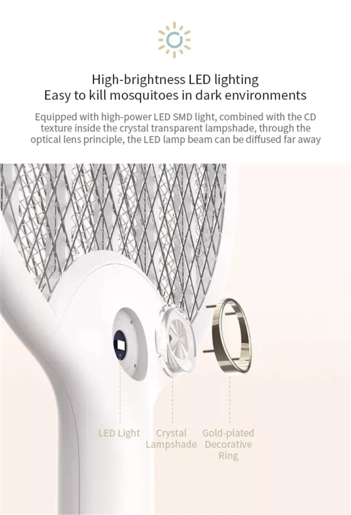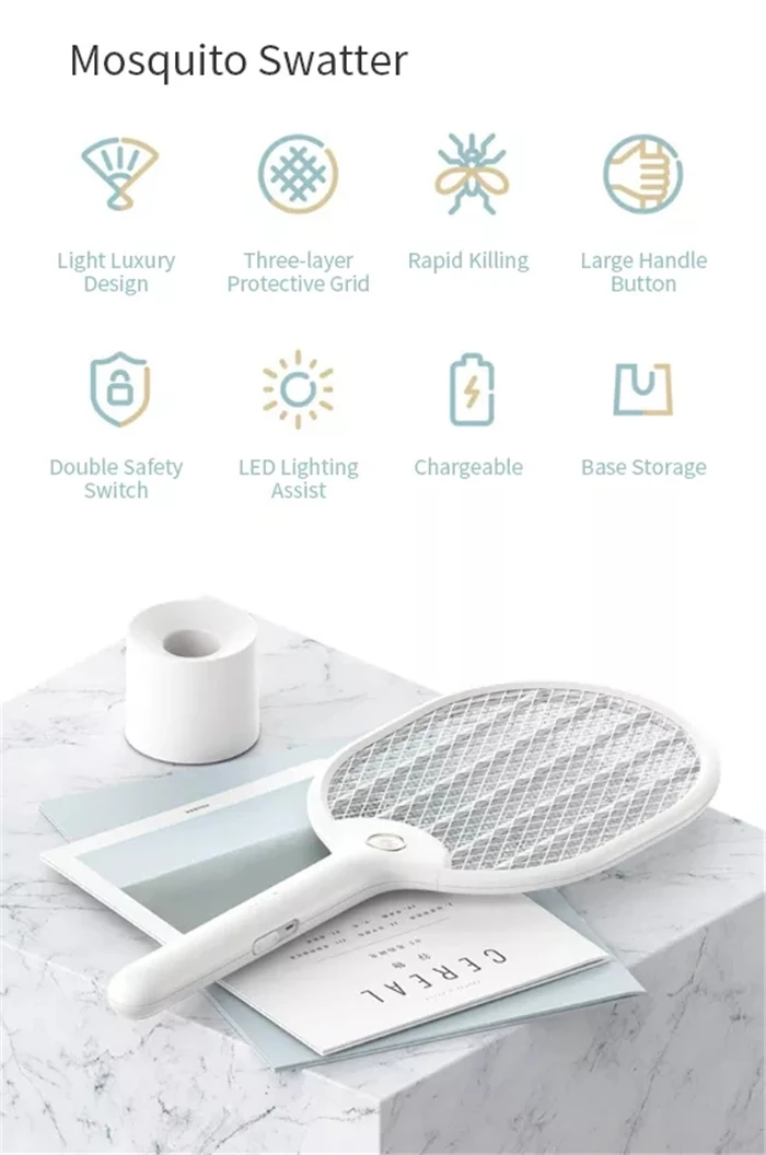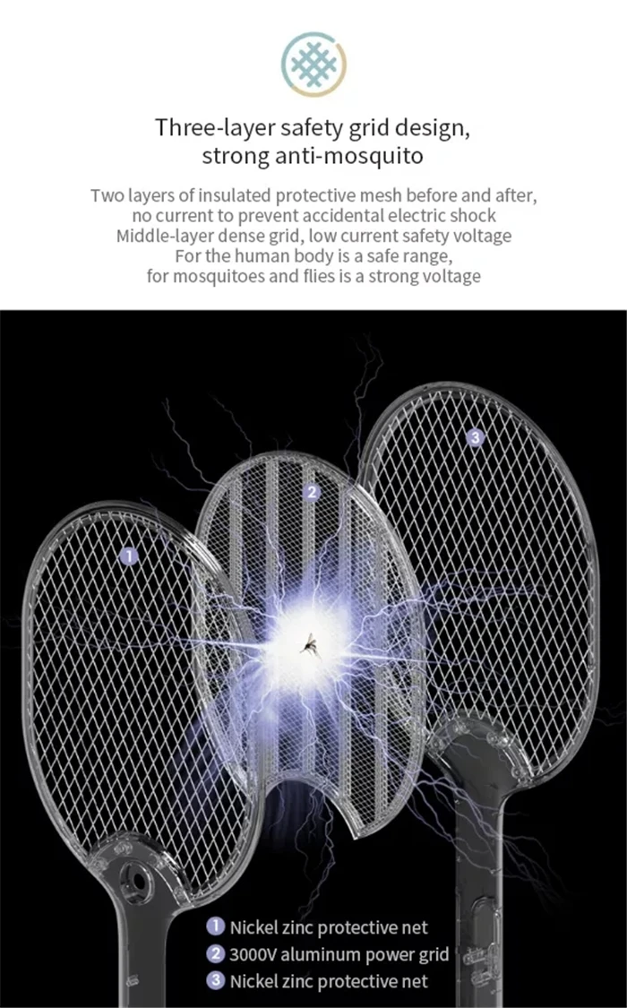 Electric Mosquito Swatter Rechargeable LED Electric Insect Bug Fly Mosquito Dispeller Killer Racket 3-Layer Net