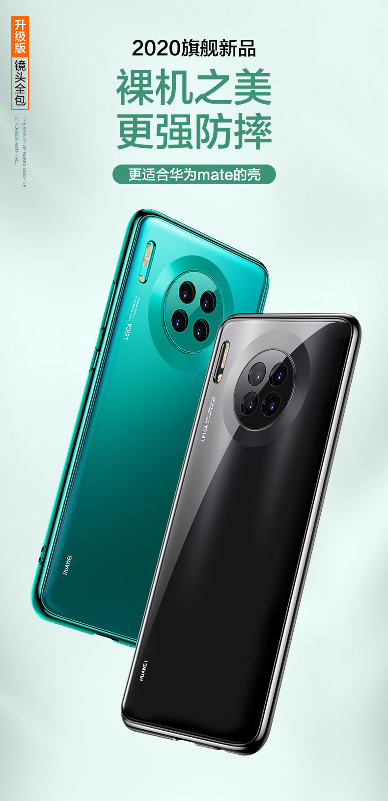 Wrap completely transparent lens mate40 cases, models: Mate 30-40 pro + / p30-40 pro +, color: multicolor optional, material: TPU, packing: OPP