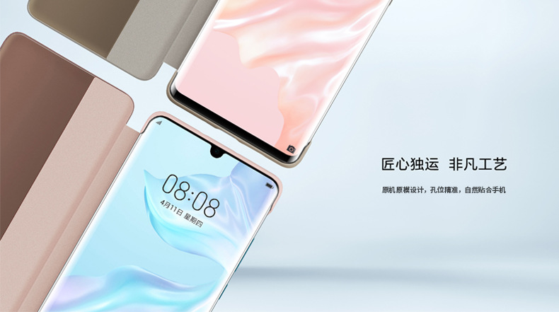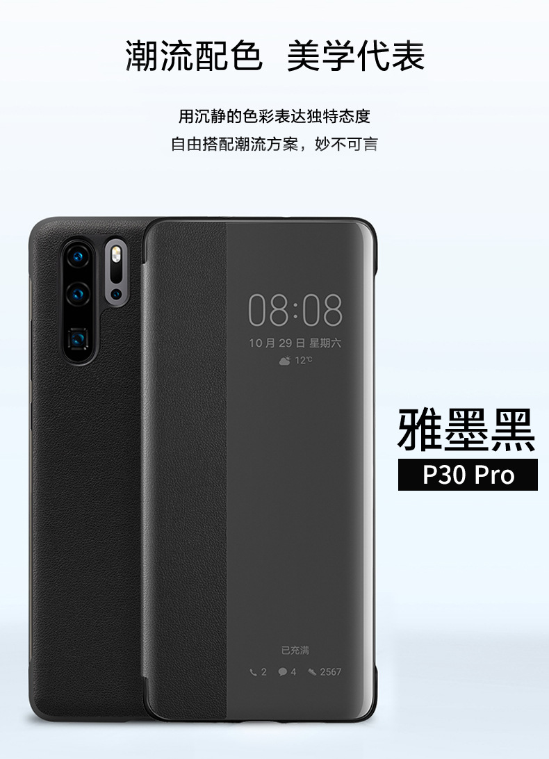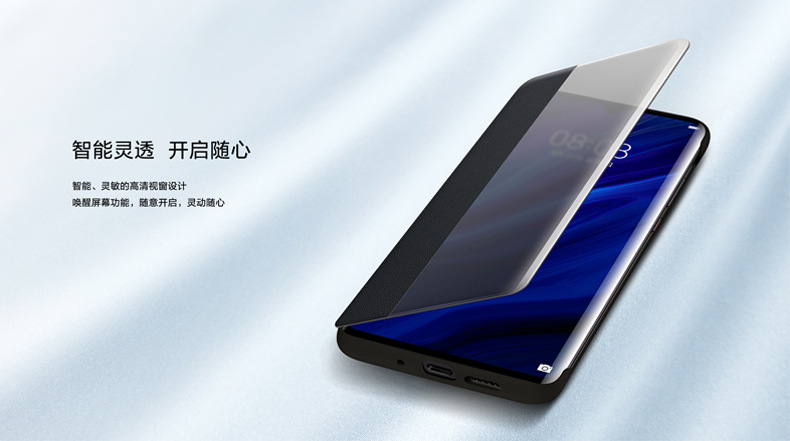 Holster clamshell intelligent drop following, models: p30 / p30pro/Mate 30/30 pro, color: black, pink, grey, gold, blue, material: imitation leather, packing: OPP