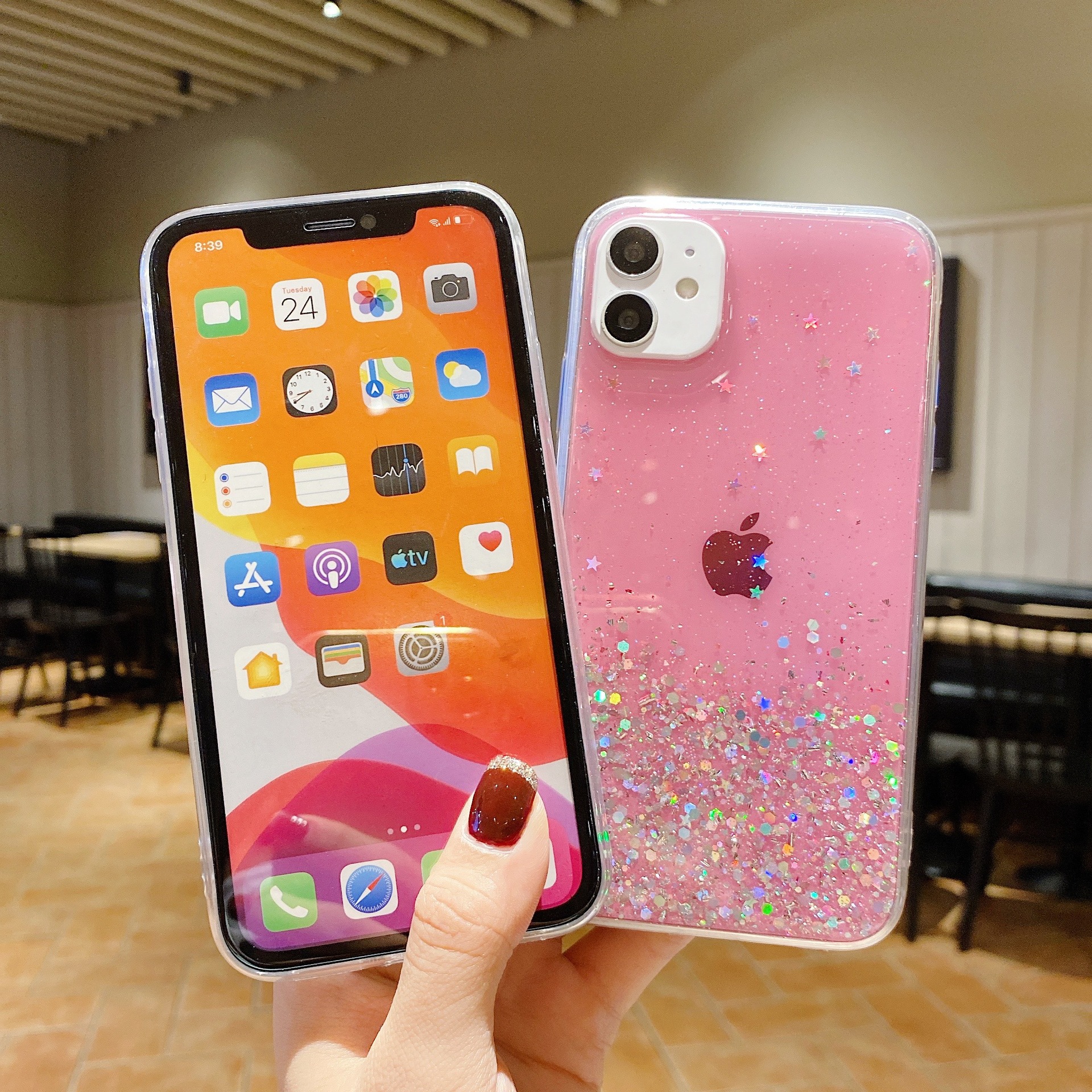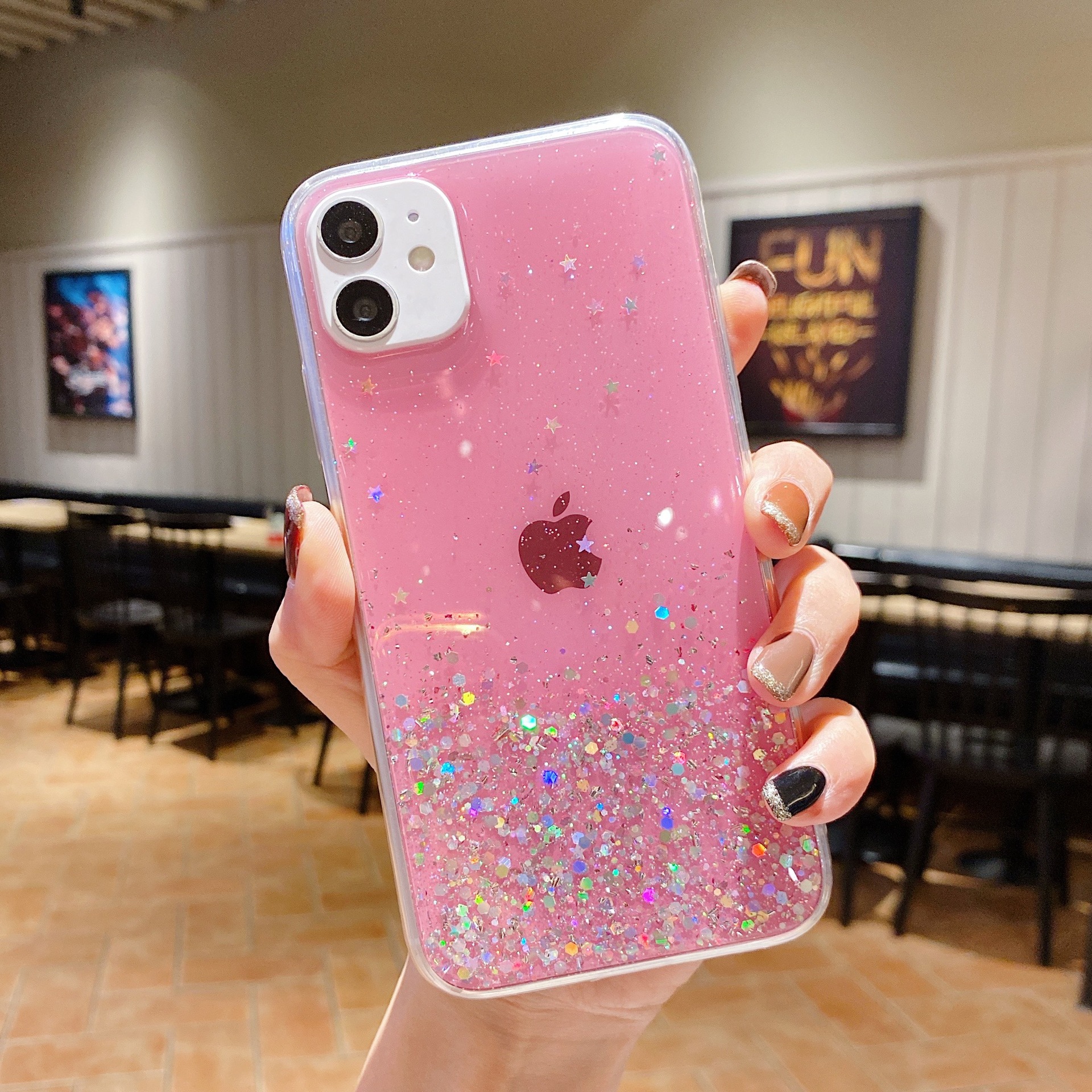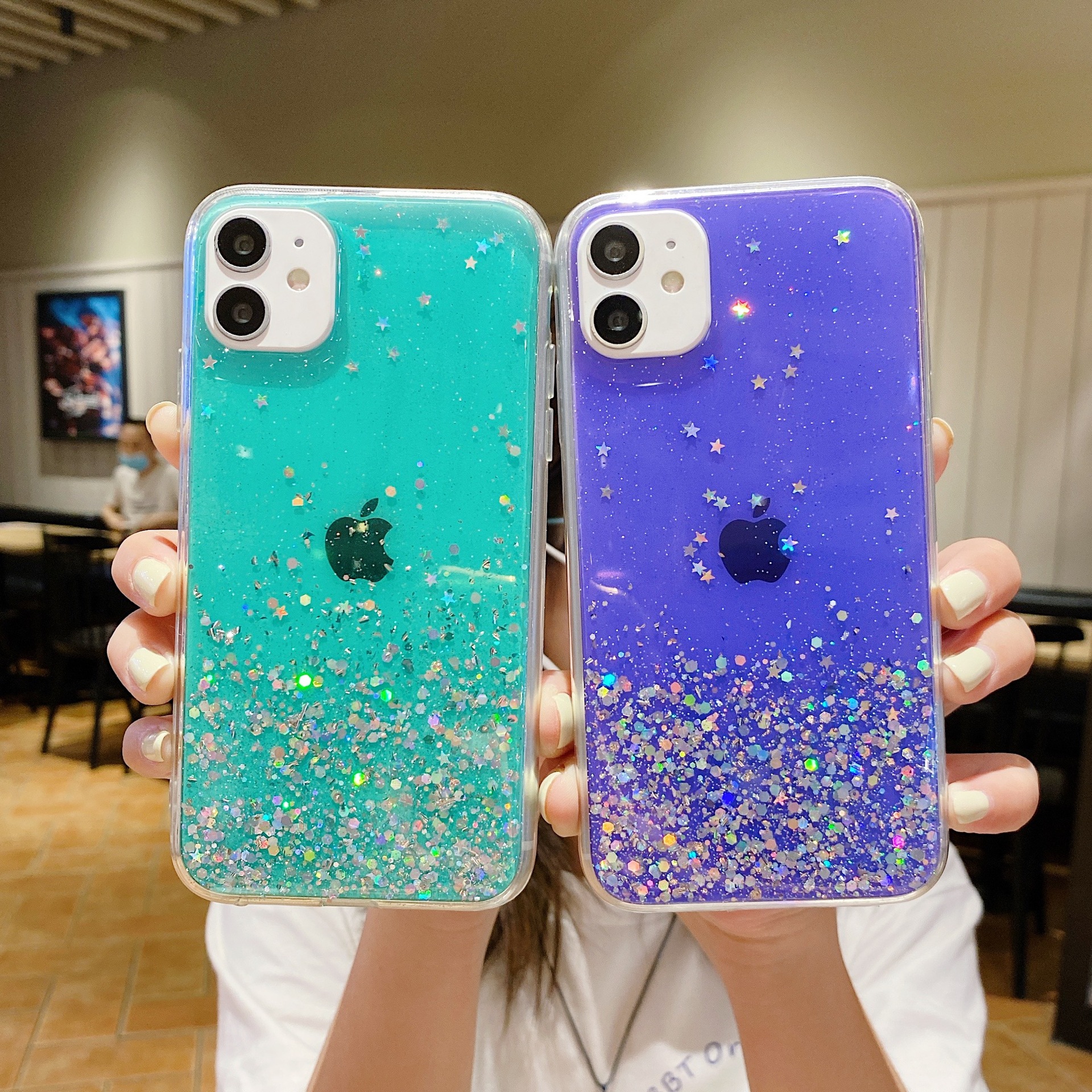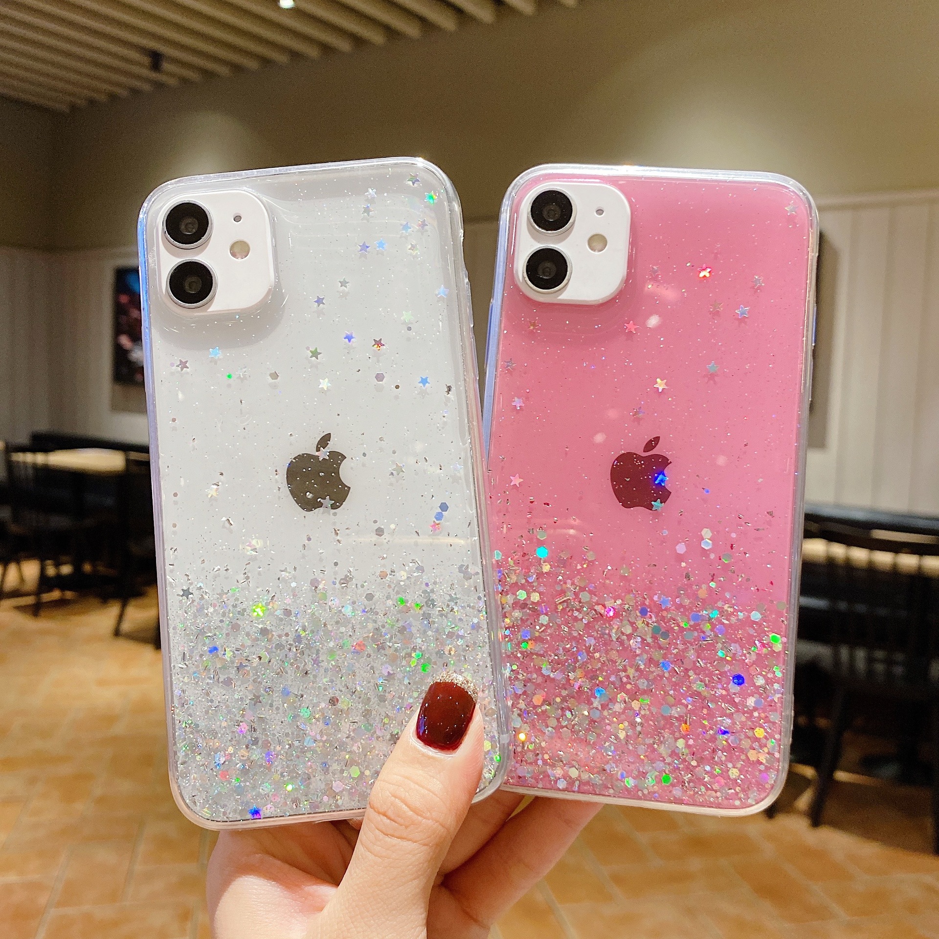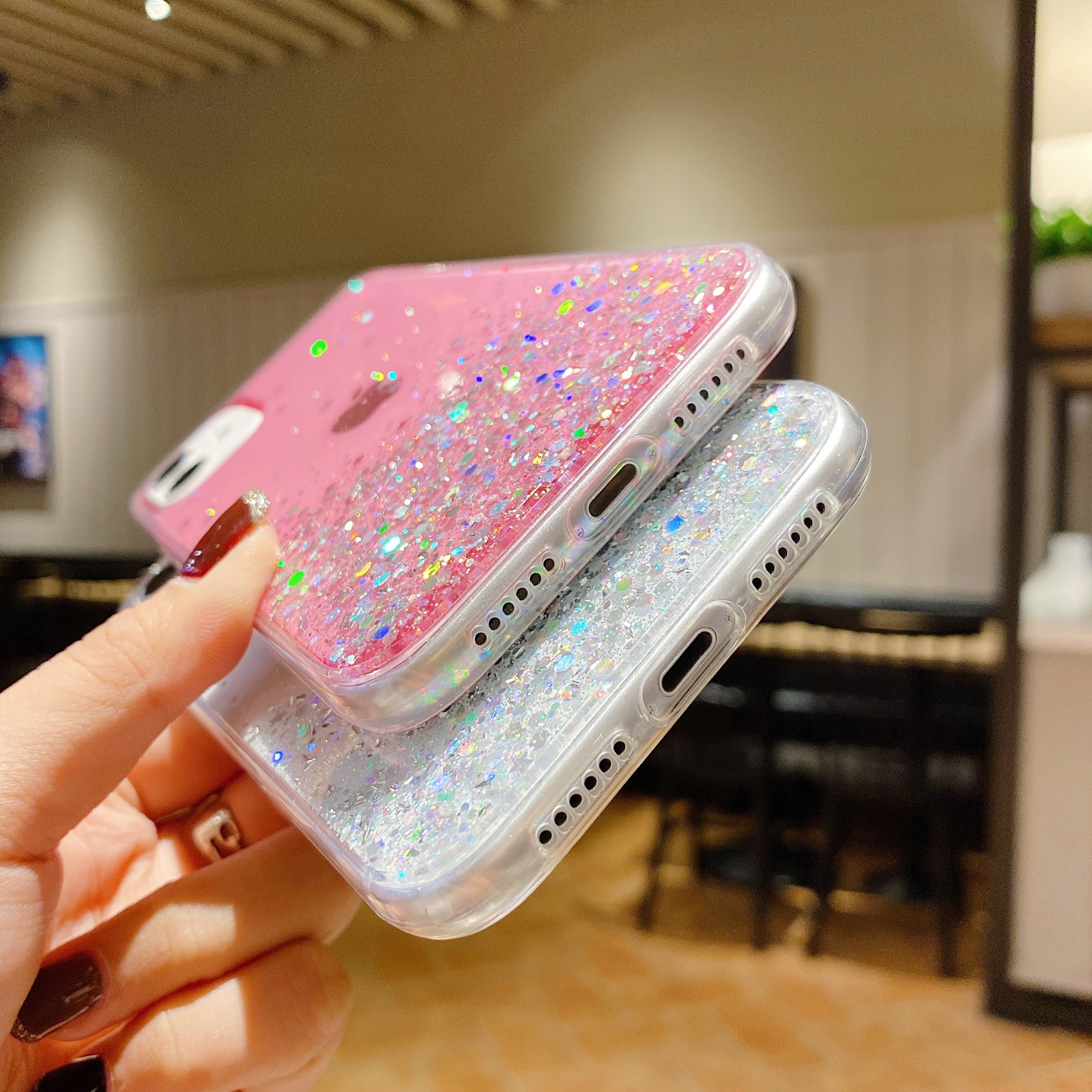 Gradient flash powder paillette cases following from apple, models: 12/12 11/11 pro / 11 promax/pro / 12 promax / 12 mini pro / 13/13/13 promax, color: multicolor optional, material: acrylic, packing: OPP