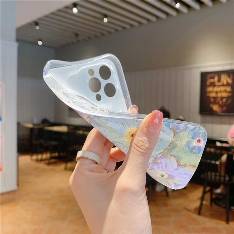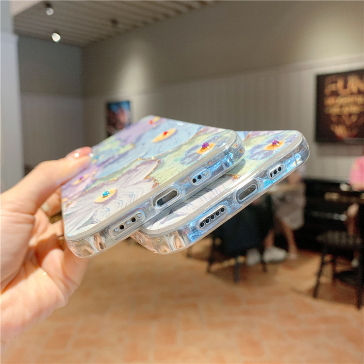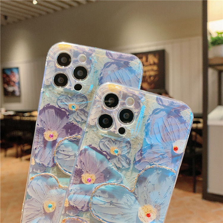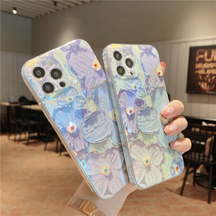 Oil painting purple Daisy flowers for apple following from blue, models: 12/12 11/11 pro / 11 promax/pro / 12 promax / 12 mini / 13/13 pro / 13 promax / 13 mini, color: color mixture, material: TPU, packing: OPP