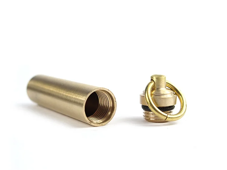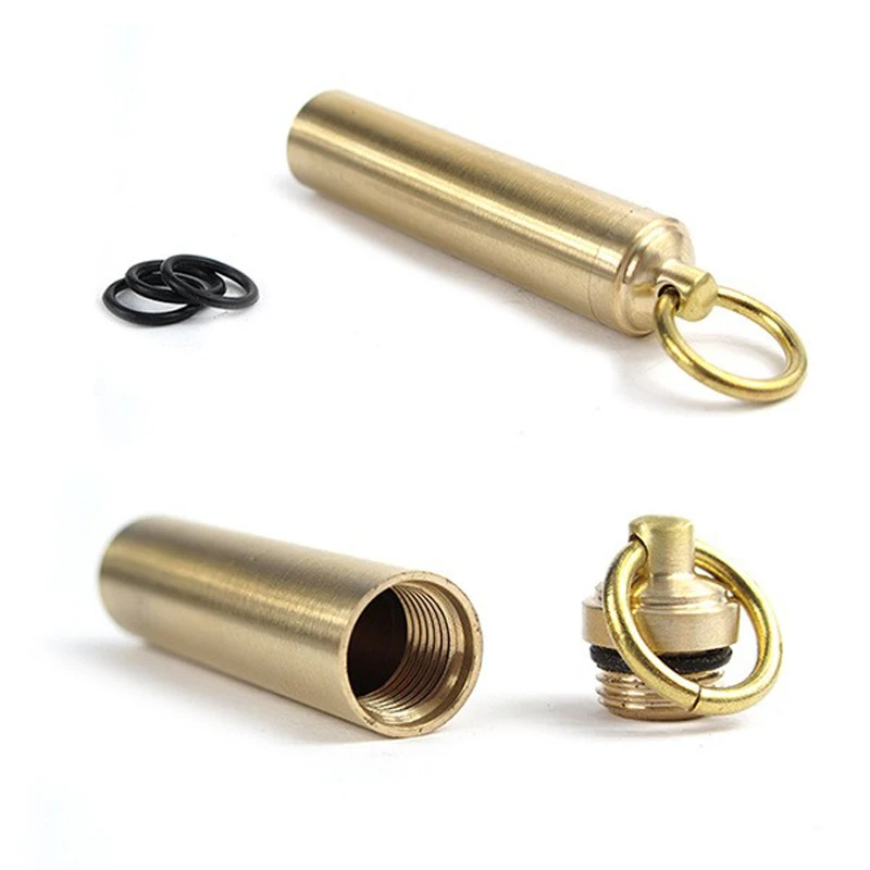 Rayseeda Brass Outdoor Emergency Water Proof Pill Bottle Portable Keychain Camping Capsule Seal Small Gallipot Cartridge
