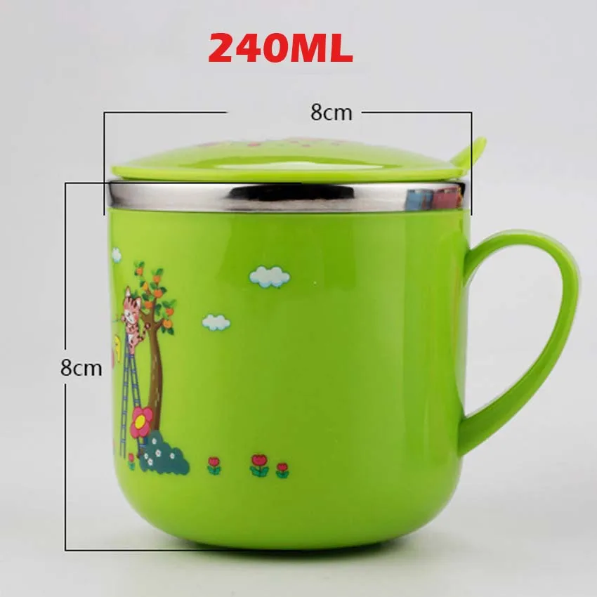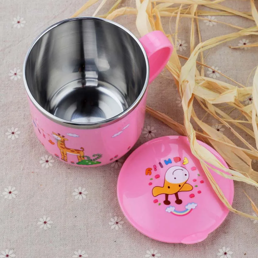 Baby 240ml Kawaii Cups Lion Rabbit Rainbow Elephant Cartoon Character Animal Stainless Steel Heat Insulation Cups
