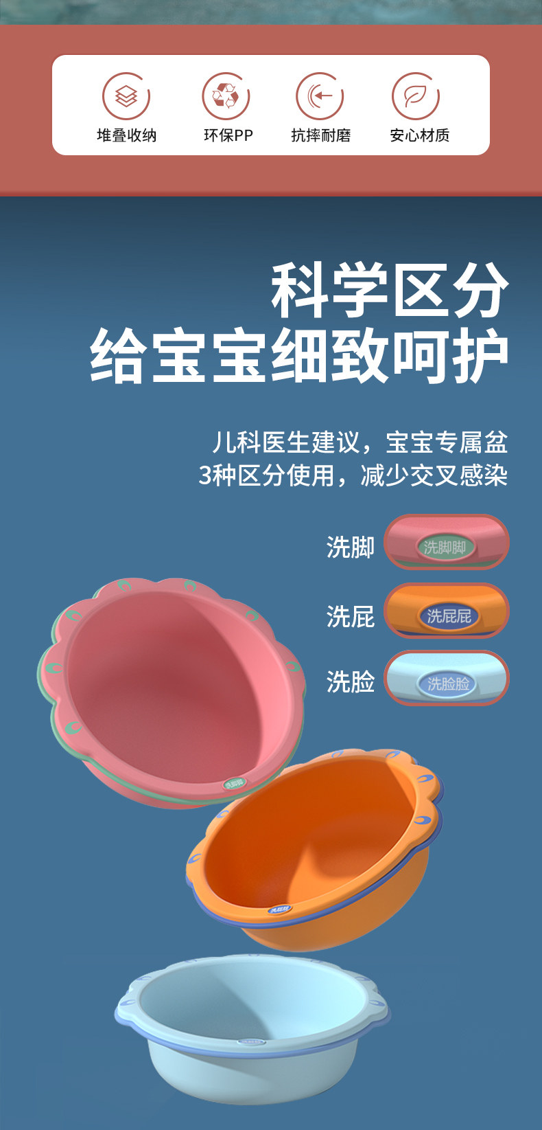 Baby washbasin Size: 31*31*10CM(268g) Material: environmental protection PP Capacity: 4000ml Color: mixed color