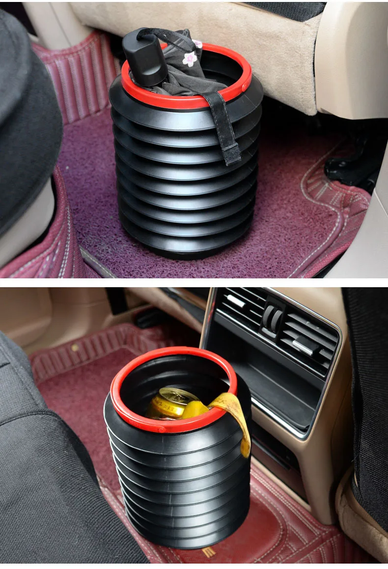 Car Trash Bin Automobile Wash Telescopic Storage Bucket Folding Rubbish Organizer Garbage Can Universal Black 1 Pc