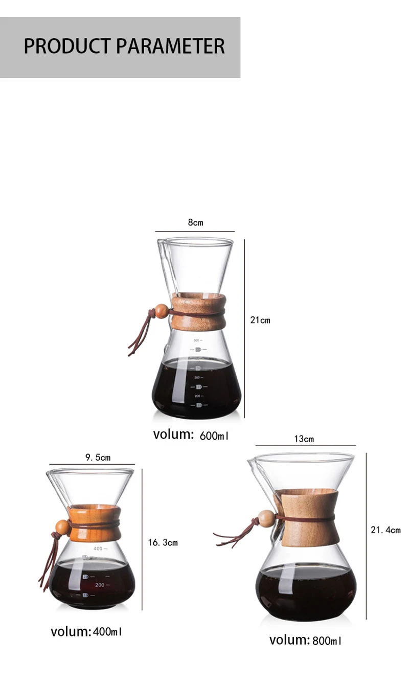 – Made of high borosilicate heat-resistant glass, it needs no filter paper, durable and recyclable.