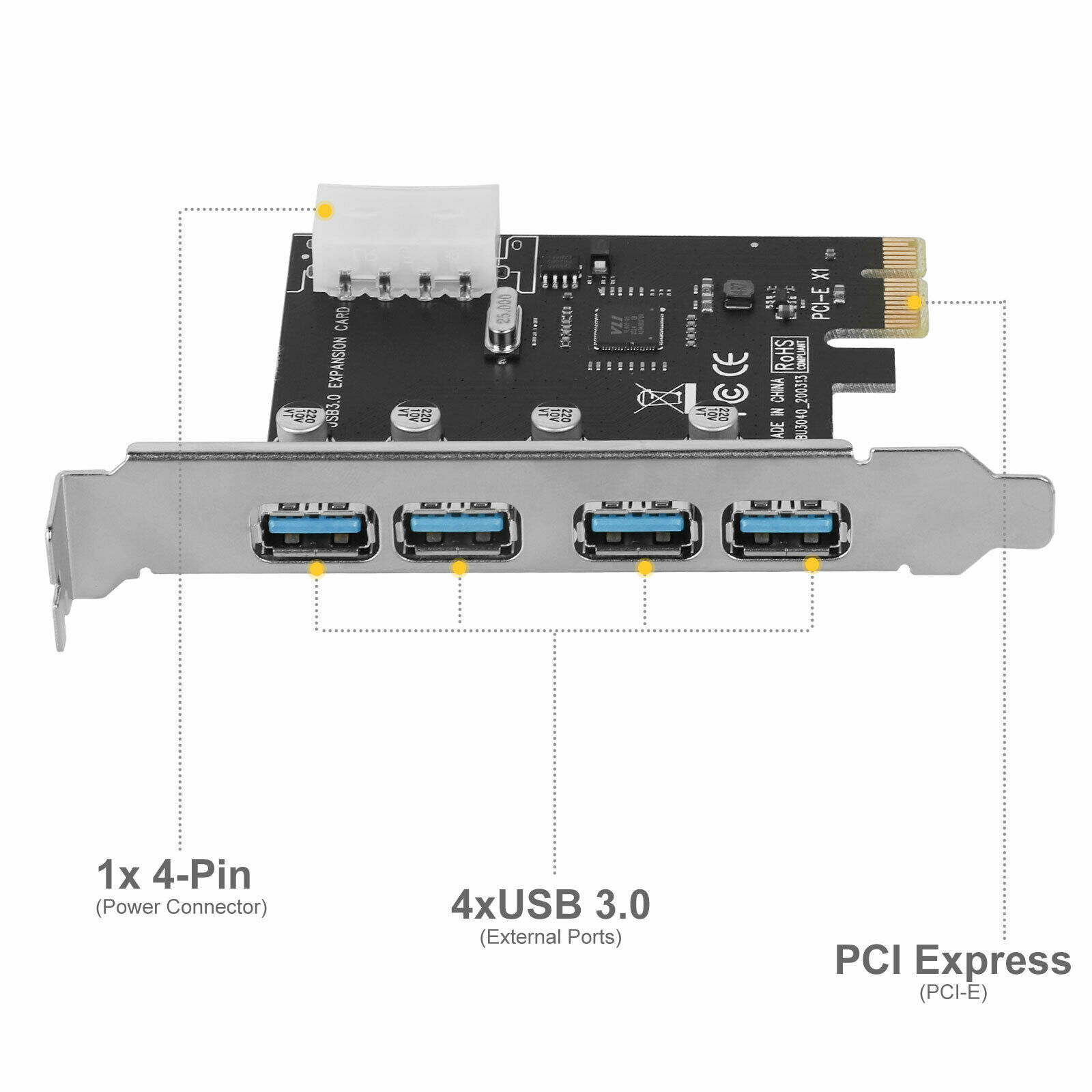 4-port PCI-E to USB 3.0 Hub