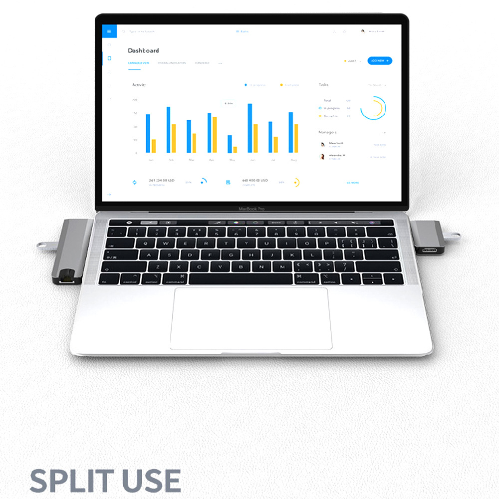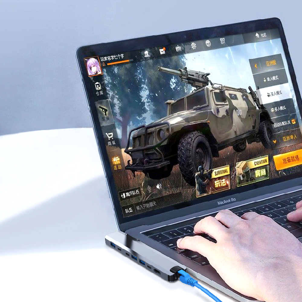 MOKiN USB C hub is slim and portable design, equipped with USB C PD port (charging only), Gigabit RJ45 port, 2 4K support HDMI ports, SD/TF card slot, 3 USB 3.0 ports. This USB C hub has a simple plug-and-play connection, turning any MacBook or USB C-capable PC laptop into a mobile workstation!