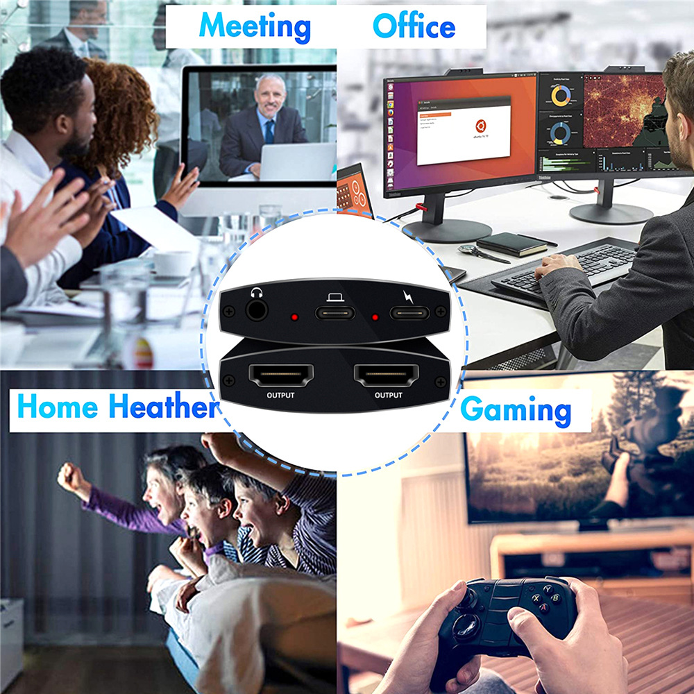 Easy setup: Multi-streaming provides simple setup by working locally on a device that supports DP Alt mode on USB Type-C; plug and play, no drivers or software required. (Note: first connect the monitor (HDMI port), and then connect to the laptop (USB-C port), you need to change the system item that provides sound from the “default audio output device”.)