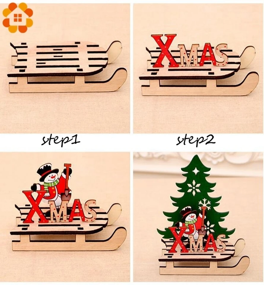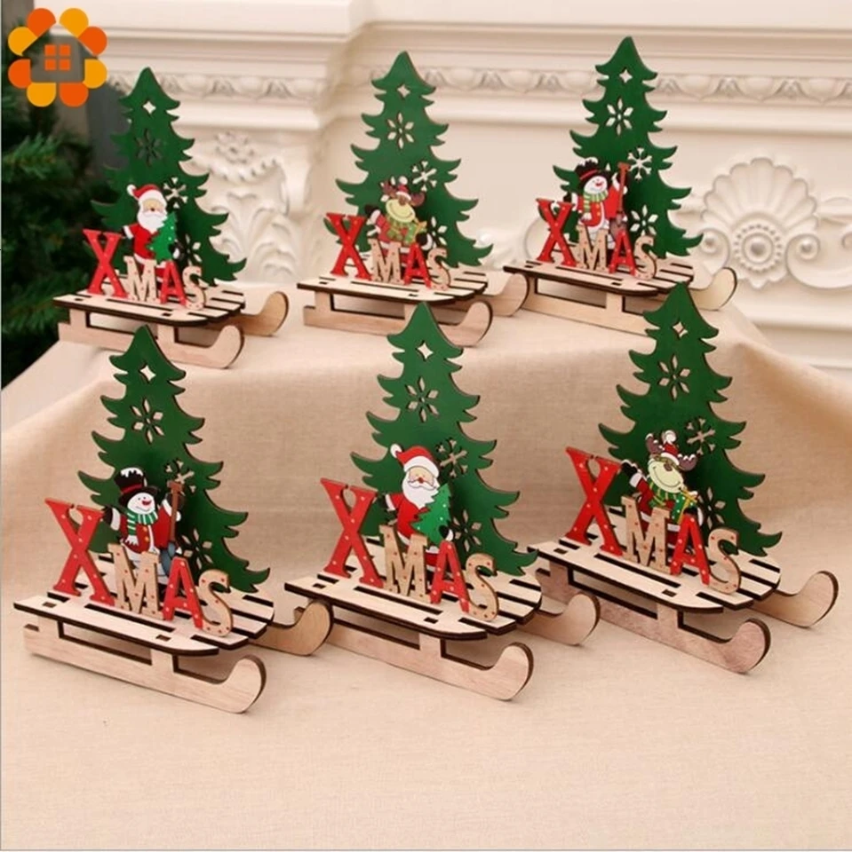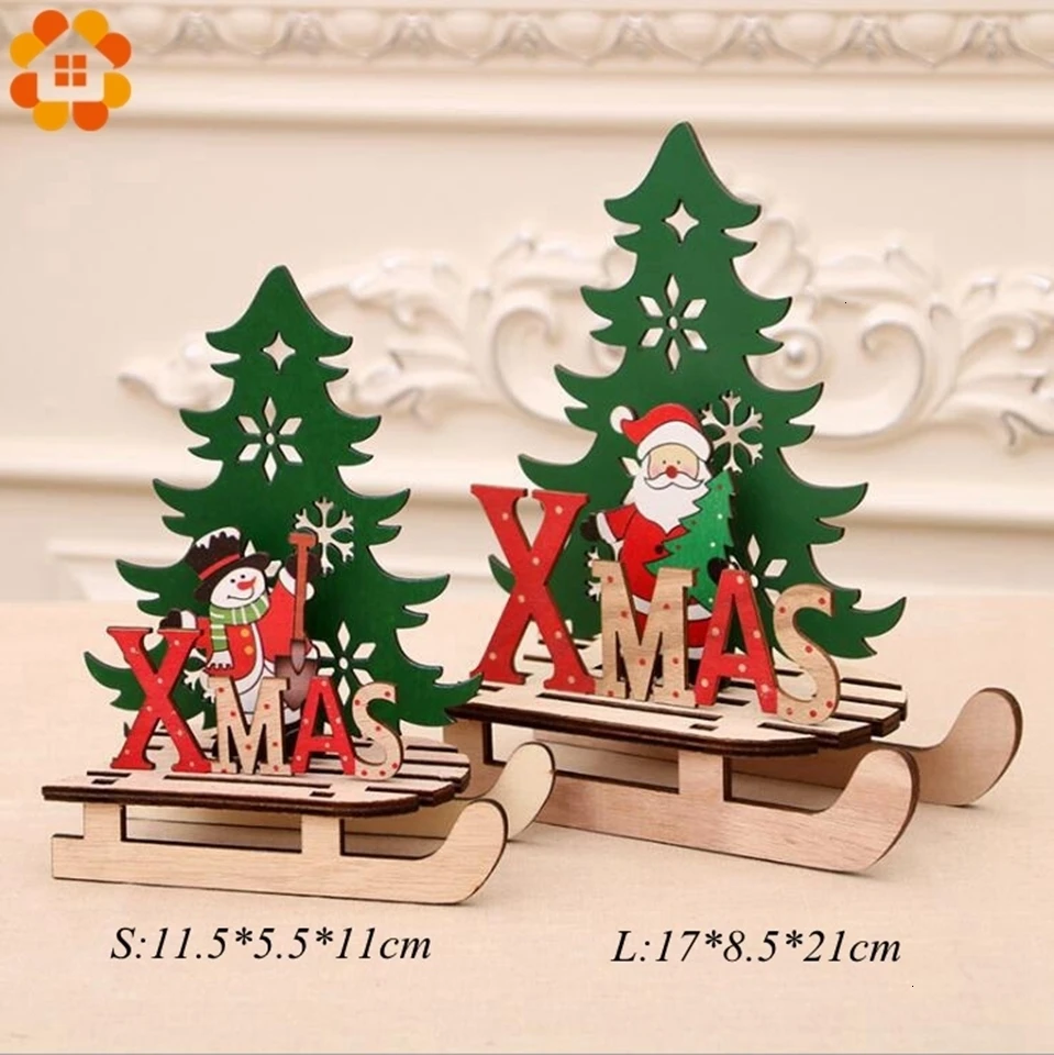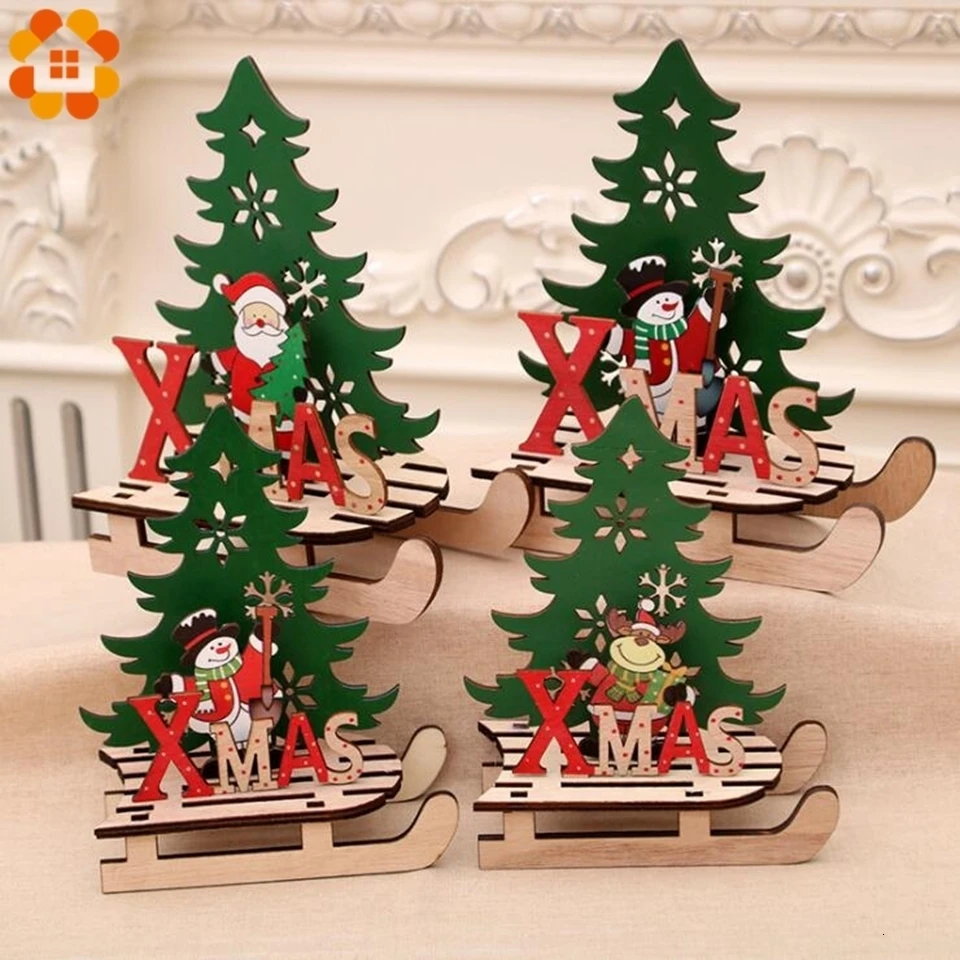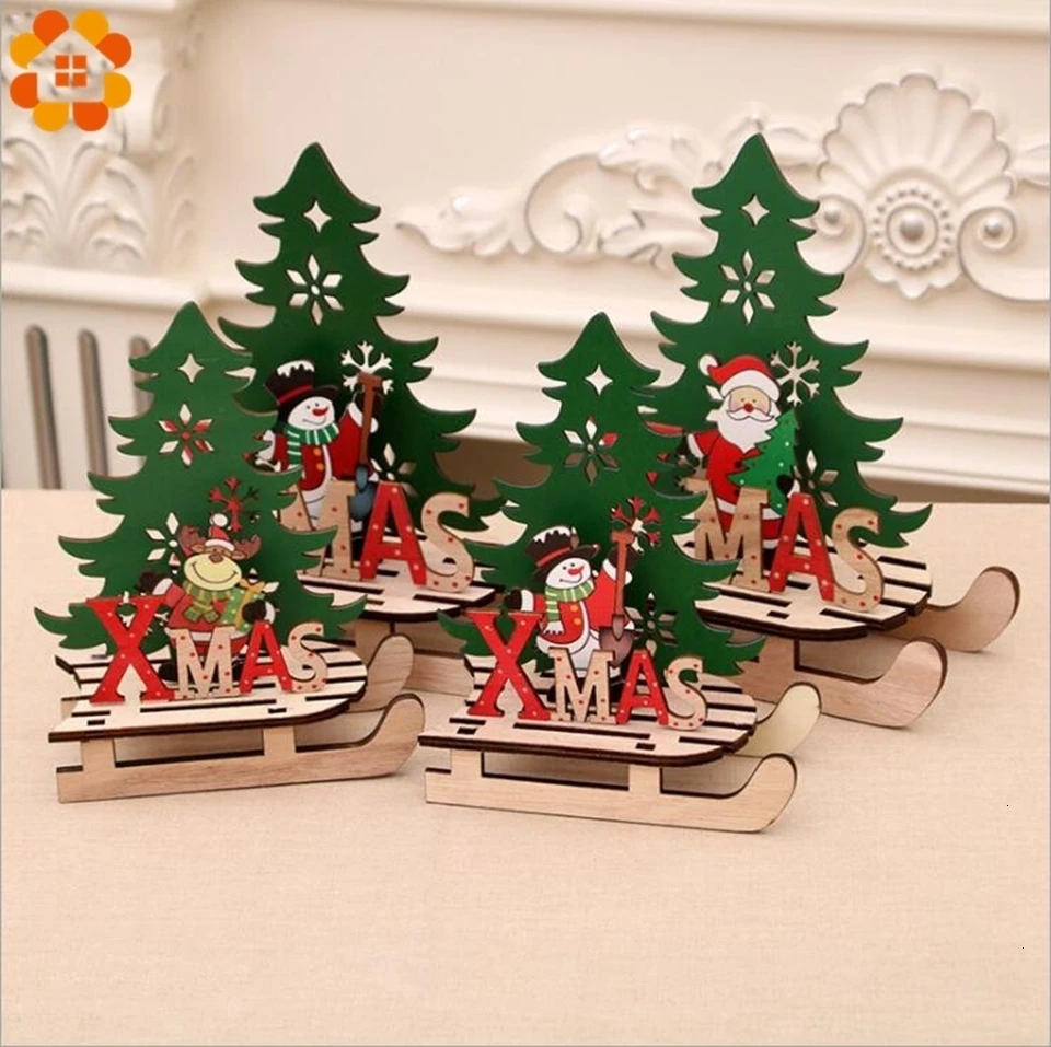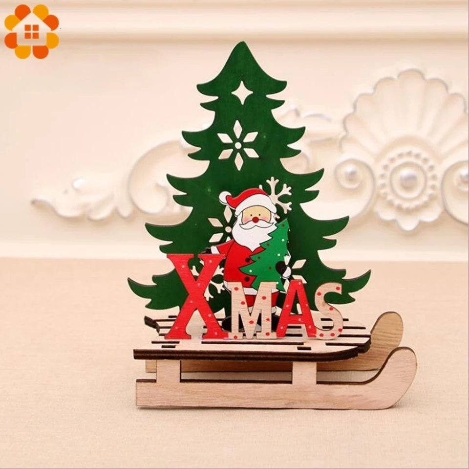 1PC Christmas Tree Shape Wooden Pendants DIY Santa Claus/Snowman Xmas Tree Deer Ornaments Christmas Party Decoration Kids Gift