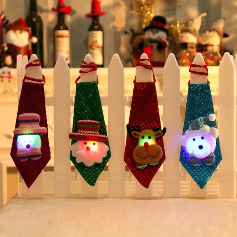 Christmas Cartoon Flashing Santa Claus Snowman Elk Ties Led Lighting Up Kids Toys for Children New Years Festival Rave Gifts