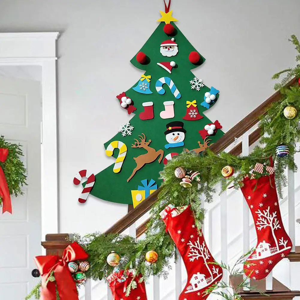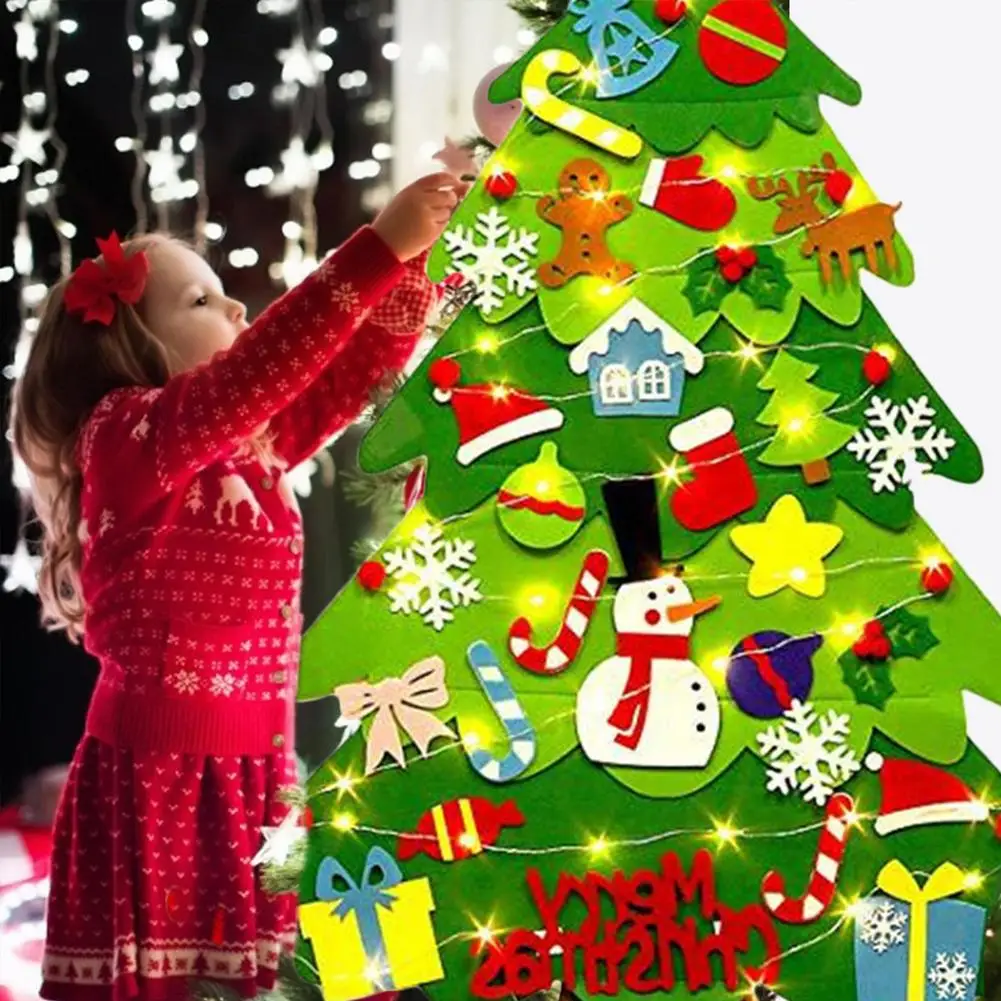 DIY Felt Christmas Tree With LED Light New Year’S Door Wall Hanging Ornaments Artificial Tree Kids Toys Christmas Decor For Home