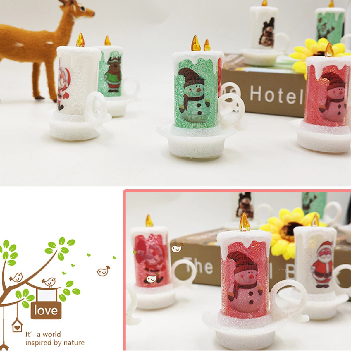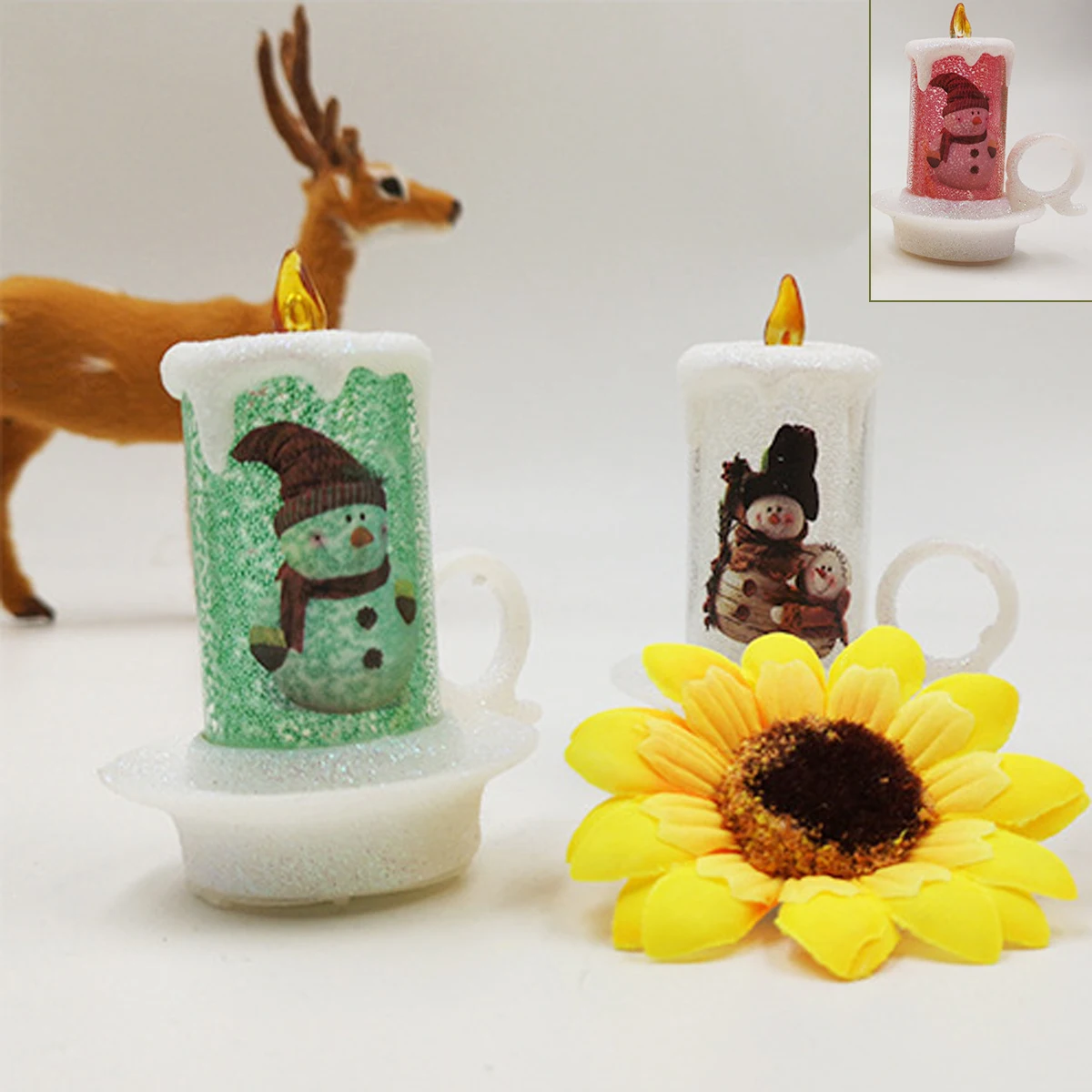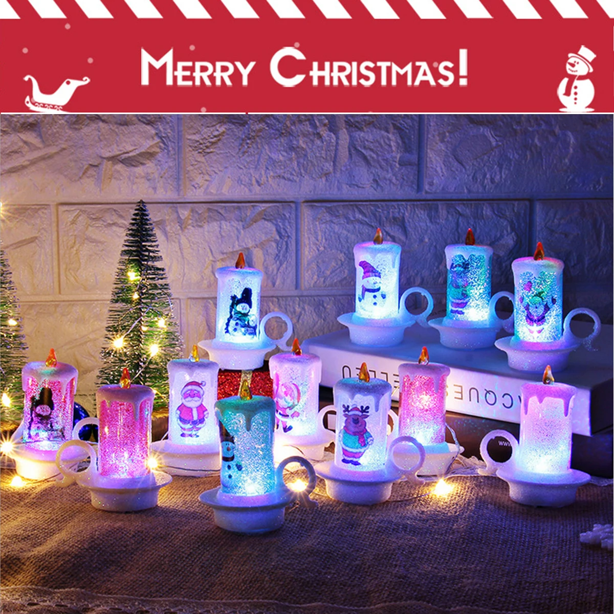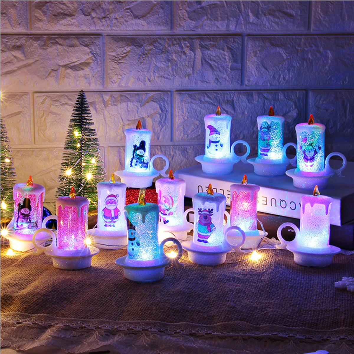Led Candle Colour Changing Flickering Light Up Glitter Ornament Xmas Decoration