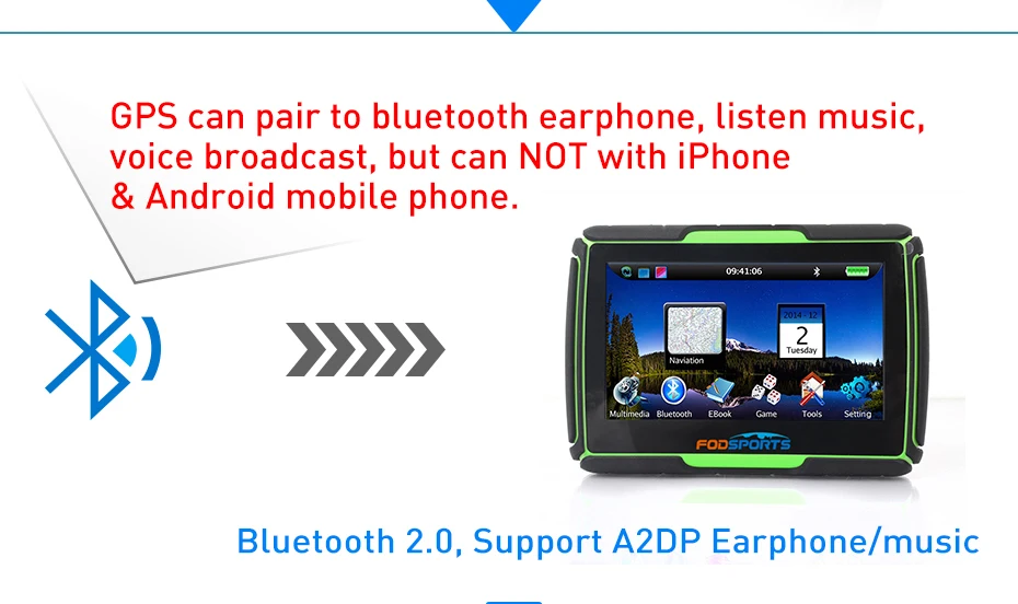 Fodsports Updated 256M RAM 8GB Flash 4.3 Inch Moto GPS Navigator Waterproof Bluetooth Motorcycle gps Car Navigation Free Maps.