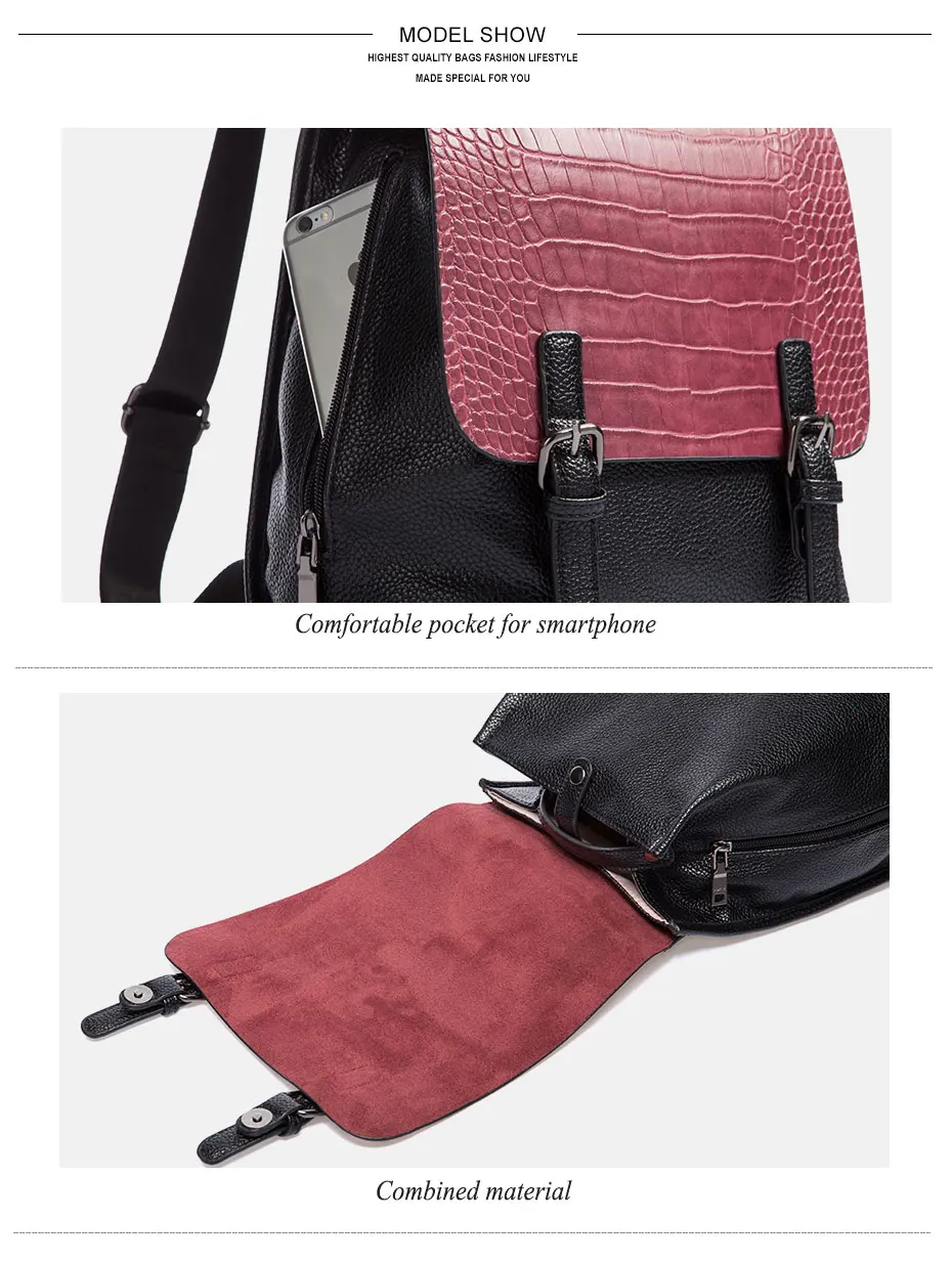 Women’s Fashion Casual Backpack Crocodile Leather Bag