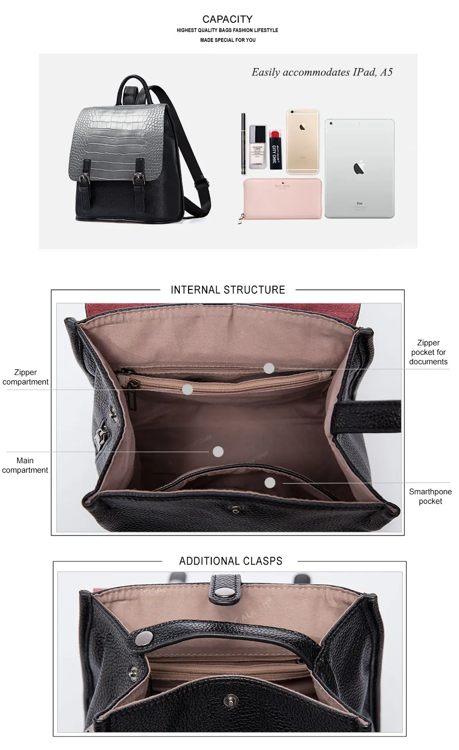 Be the first to review “Women’s Fashion Casual Backpack Crocodile Leather Bag”
