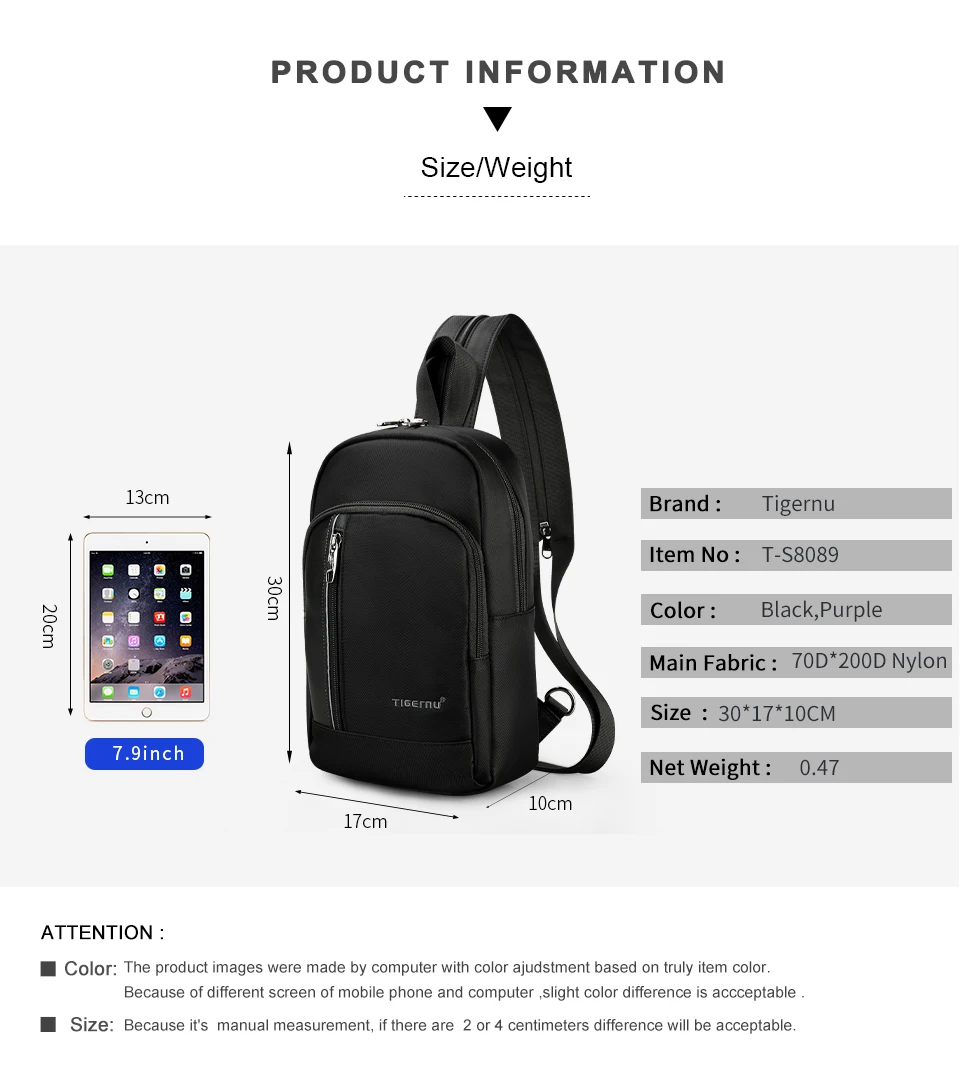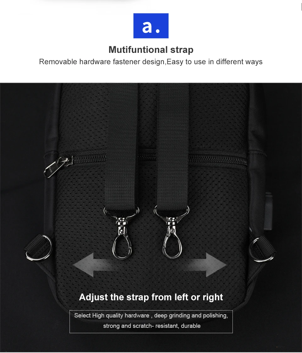 | Style | Backpack, sling bag, crossbody, chest bag, messenger bag |