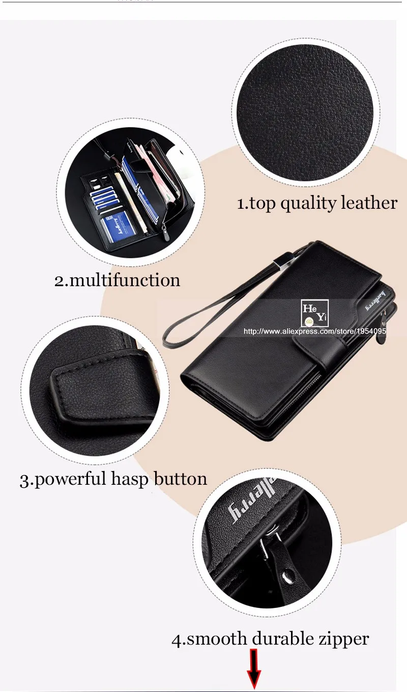Men Wallets Top Quality Male Clutch Big Capacity Cellphone Bag Leather purse Zipper Pocket Man Purse Long Baellerry