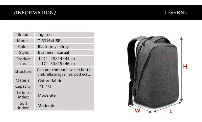 Tigernu brand men backpack anti theft USB charge 14″ 17″ laptop backpack male women school backpack schoolbag back pack bag
