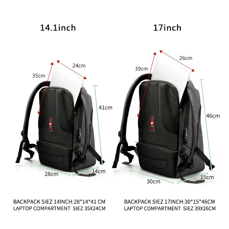 | Laptop compartment size | 14inch:W24*L35cm 17inch:W26*L39 cm |