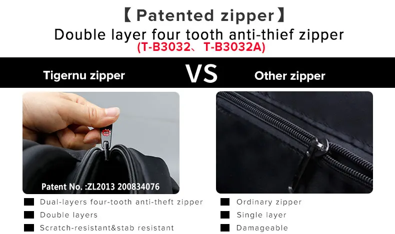 4. With exclusive Tigernu Four-Tooth Anti-theft double Zippers, run smoothly