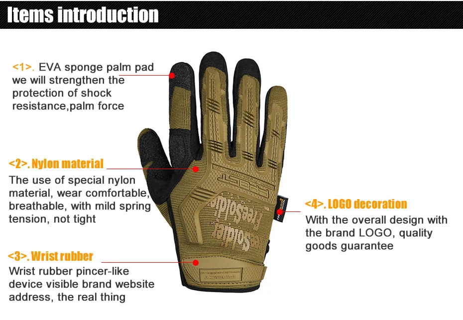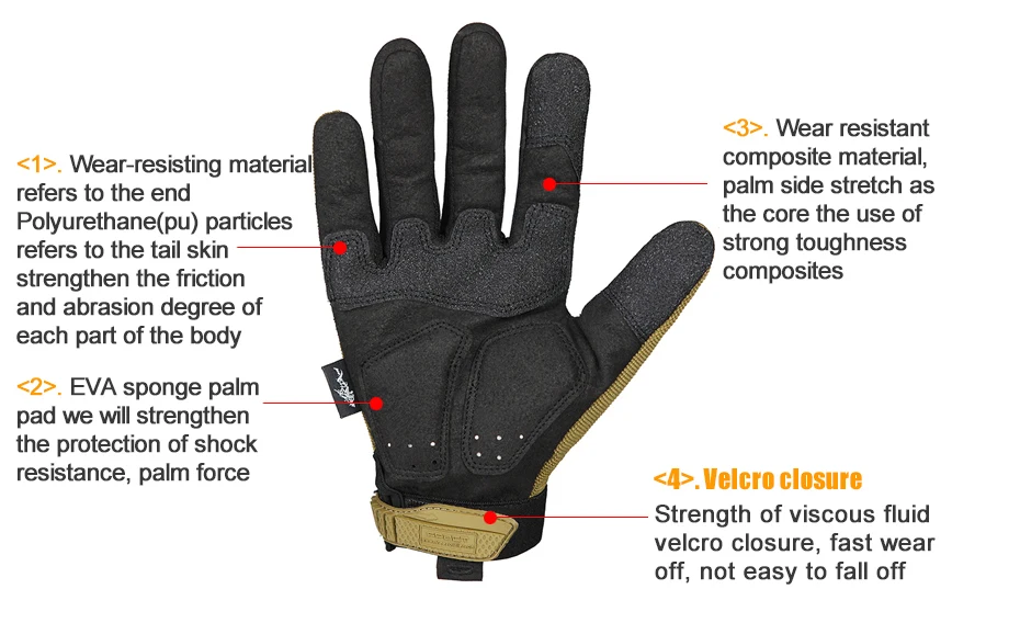 outdoor hiking cycling training sport tactical gloves men full finger Wear non-slip protection gloves