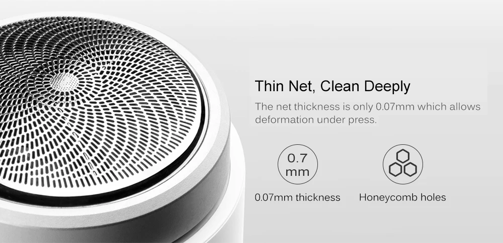 The net thickness is only 0. 07mm which allows deformation under press. Combined withhoneycomb holes, it can clean the short and hardmustache easily and completely
