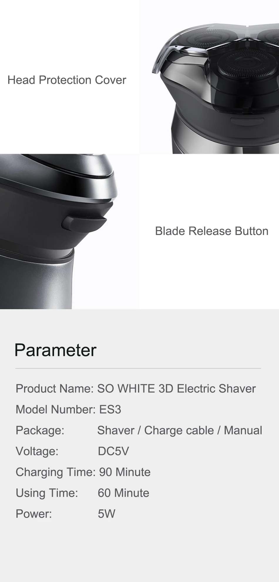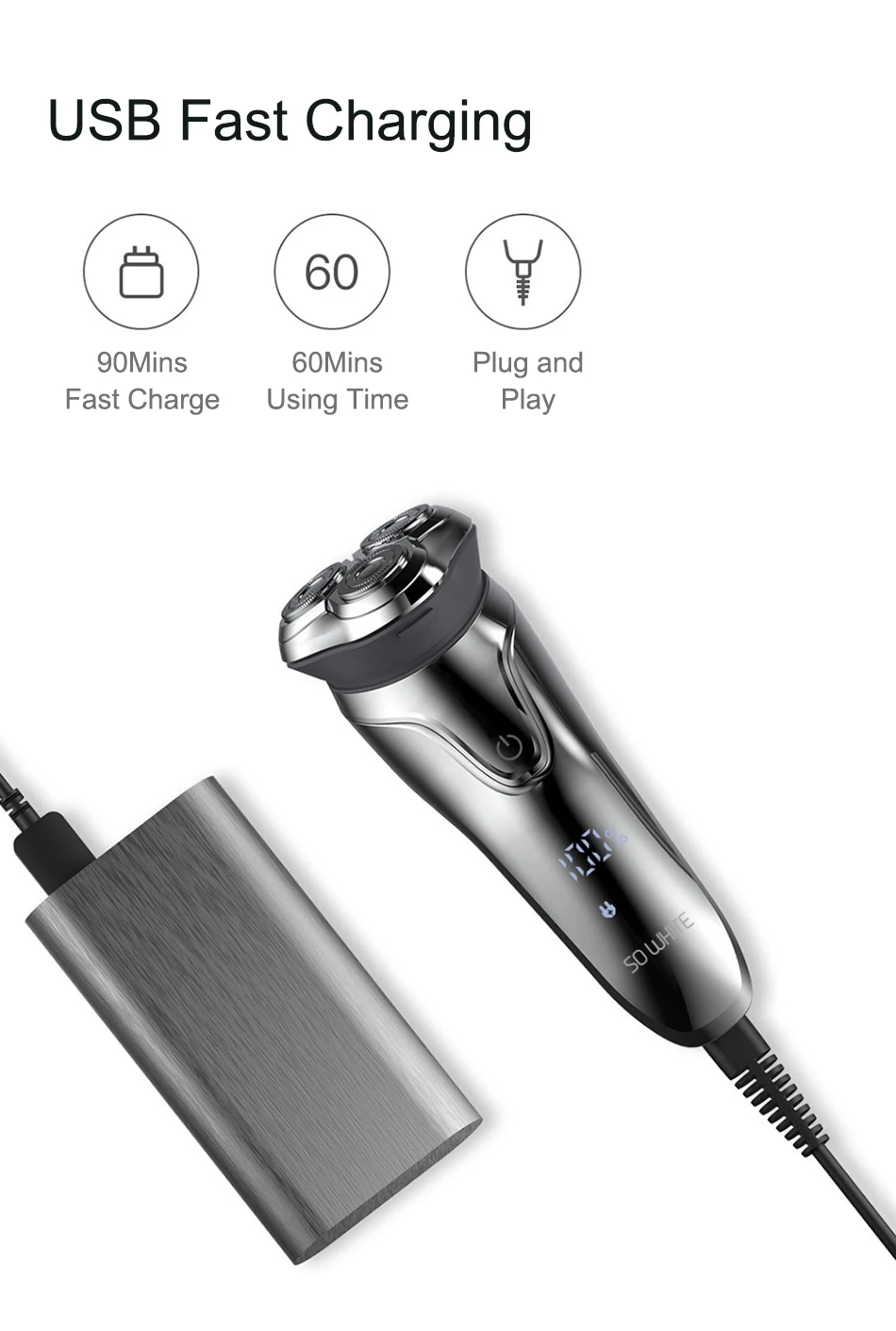 ● USB quick charging, fully charged in 90 minutes and can be used for 60 minutes at a time