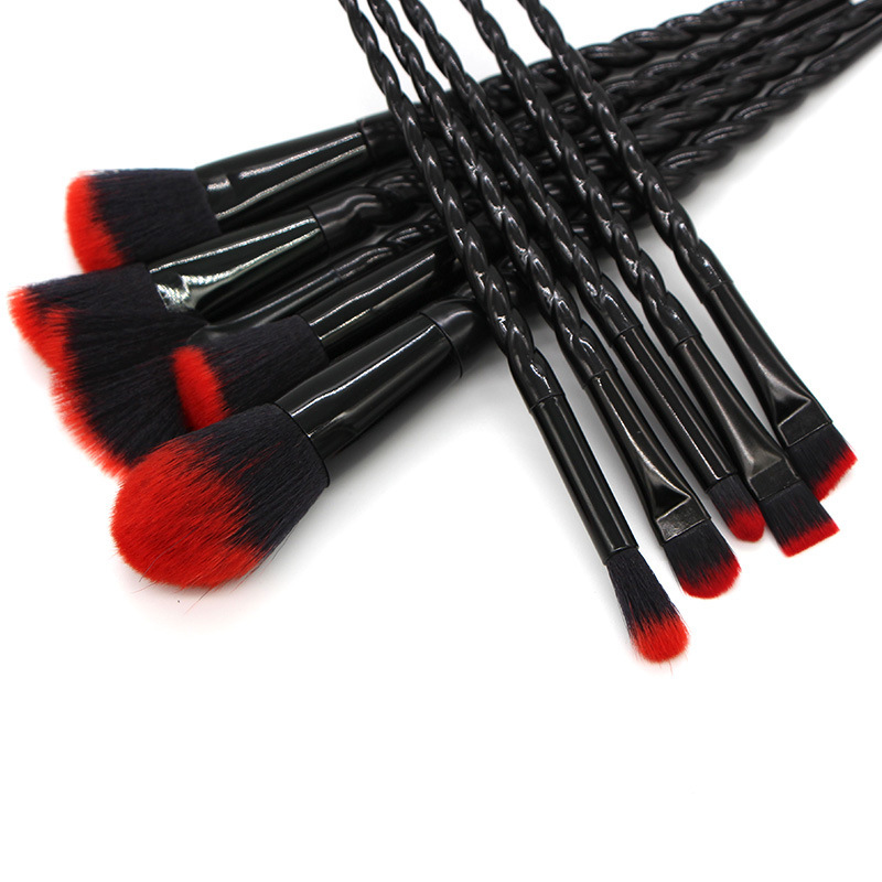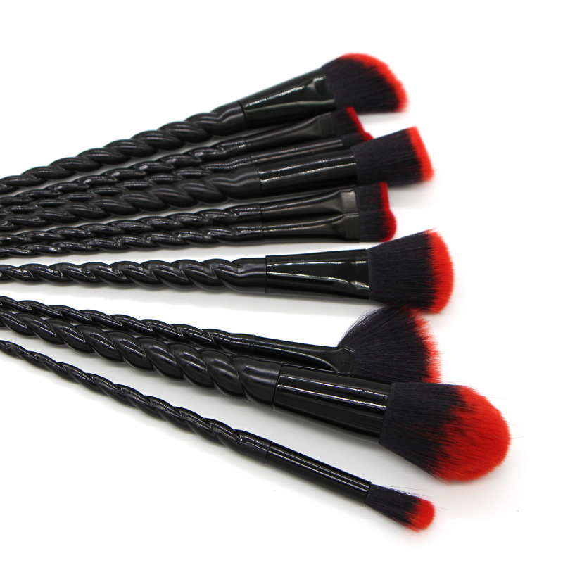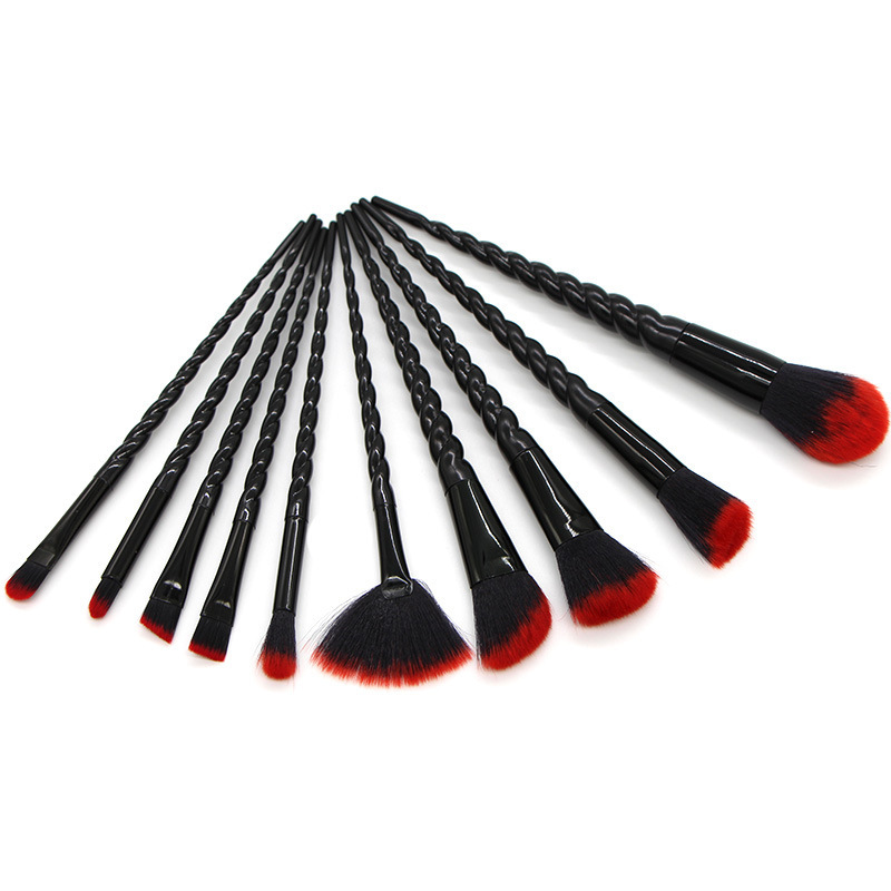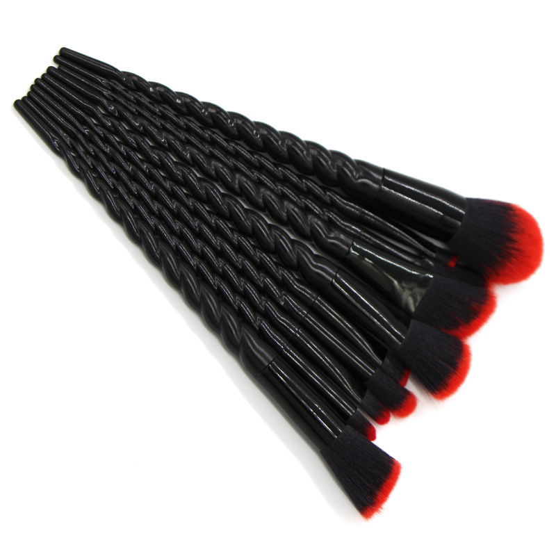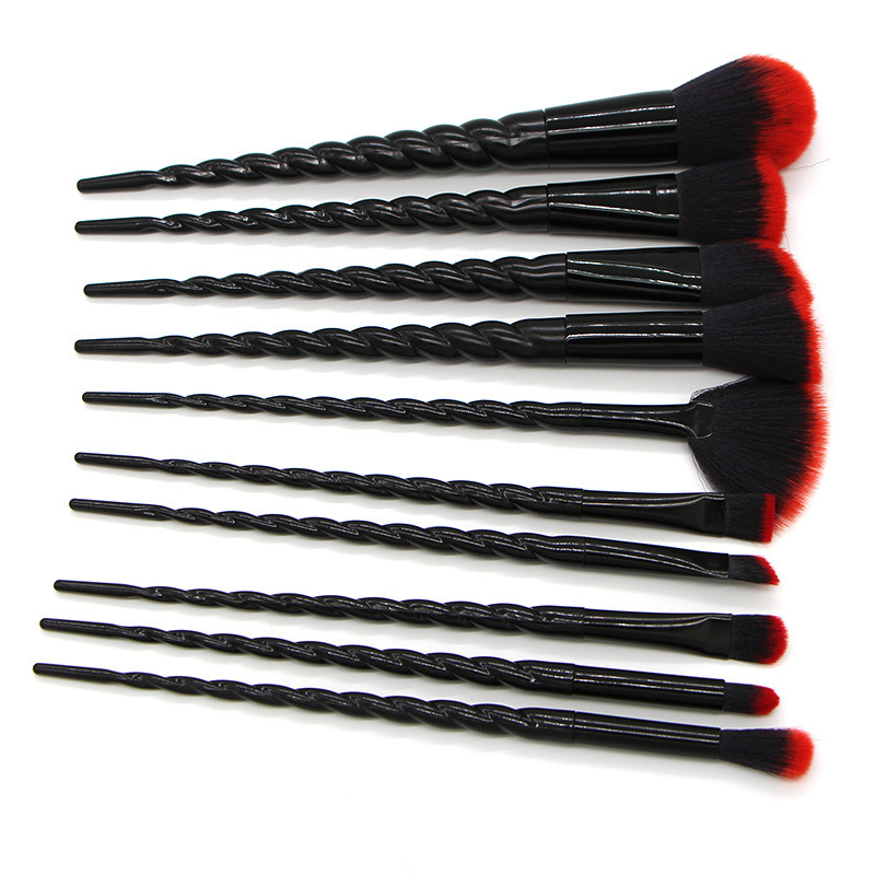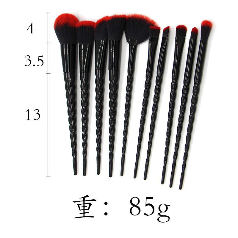 10 Threaded Spiral Handle Makeup Brushes Size: 20*4CM Material: plastic/chemical fiber Packing: opp bag Color: picture color Packing: 200pcs