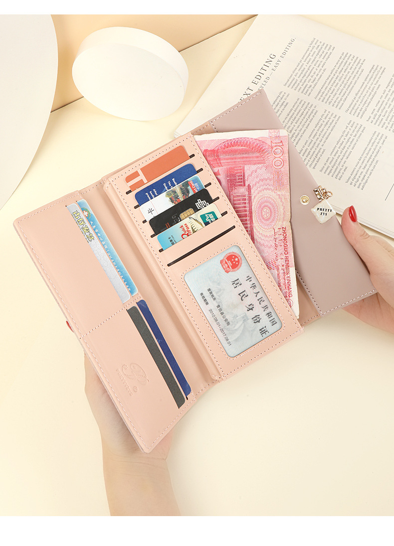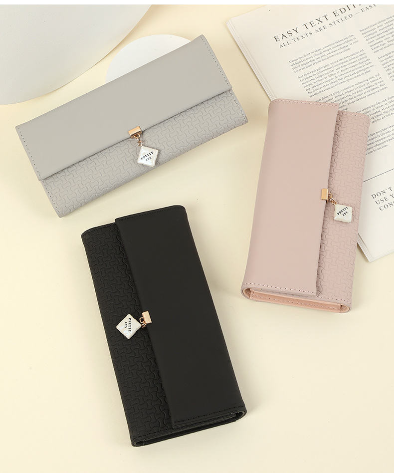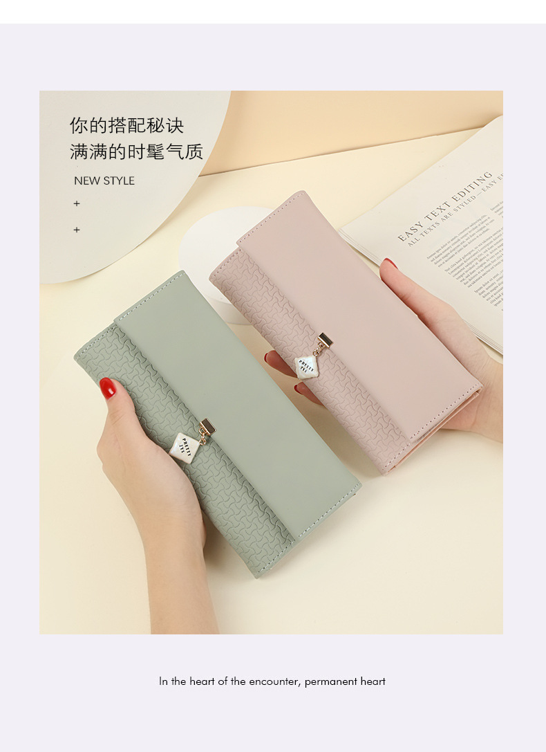 Wallet women long 2021 new wholesale Korean style small fresh three-fold buckle zipper wallet large-capacity clutch