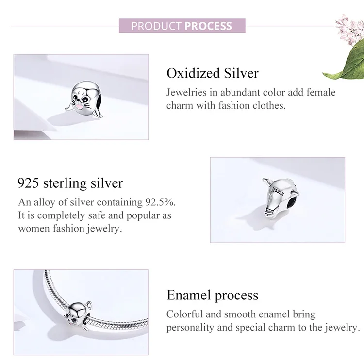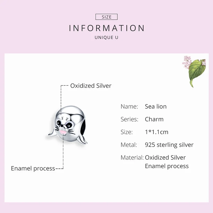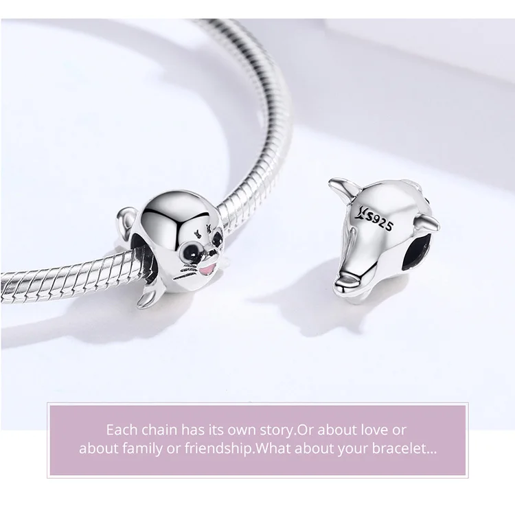 bamoer Animal Sea Lion Metal Beads for Women 925 Sterling Silver Charm fit Original Bracelet Bangle Accessories