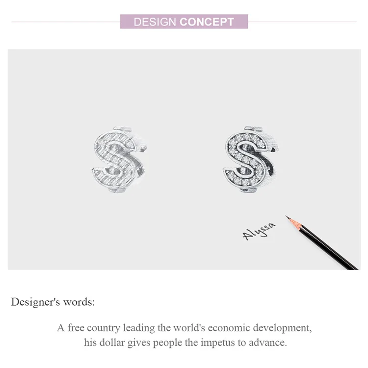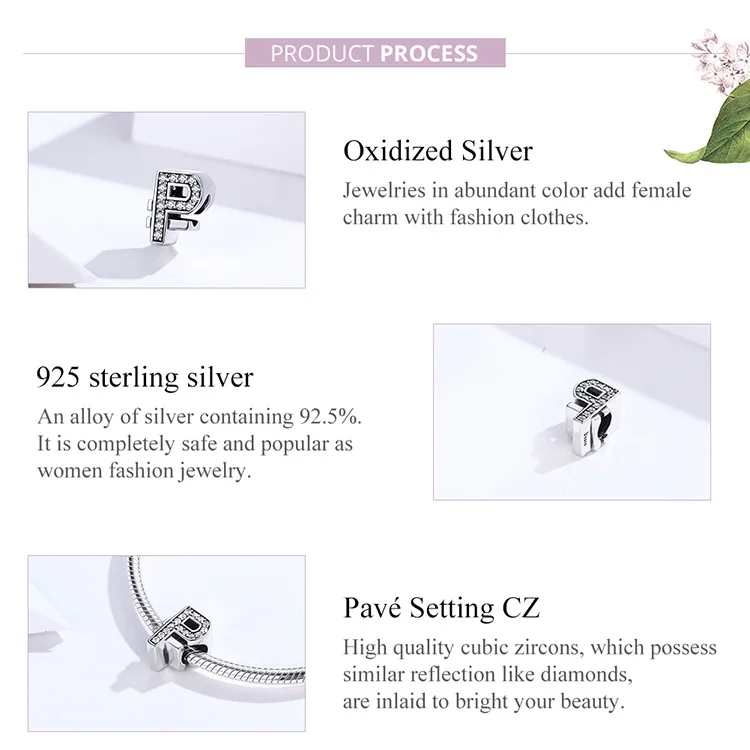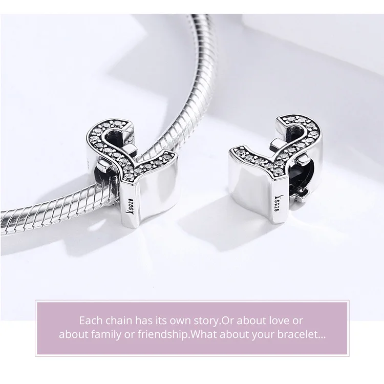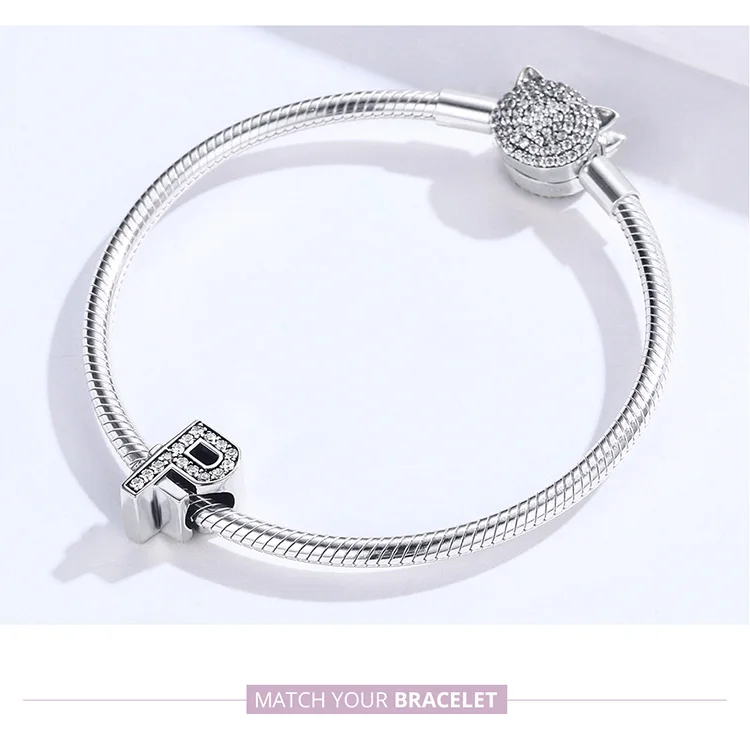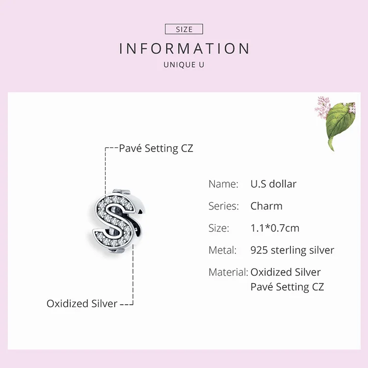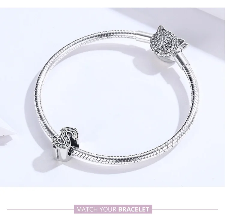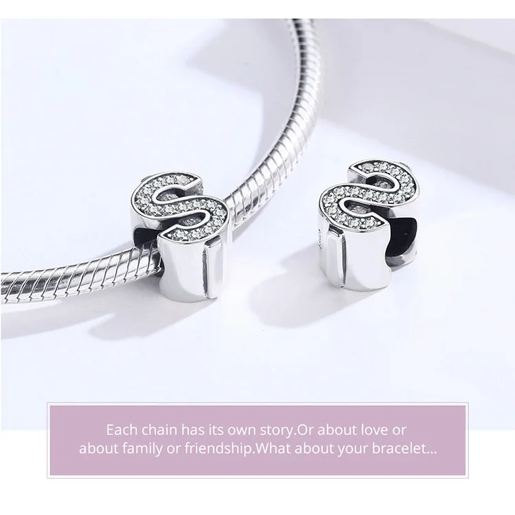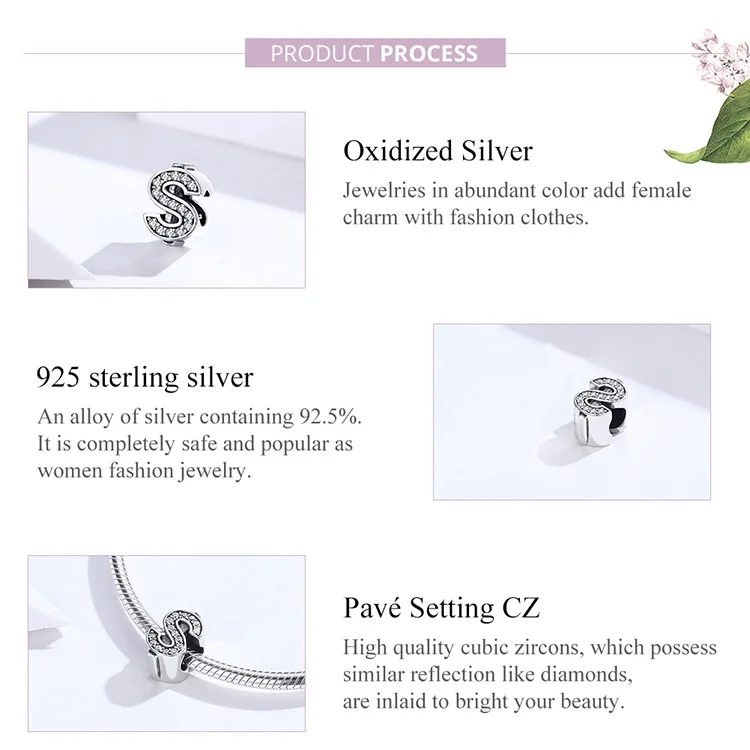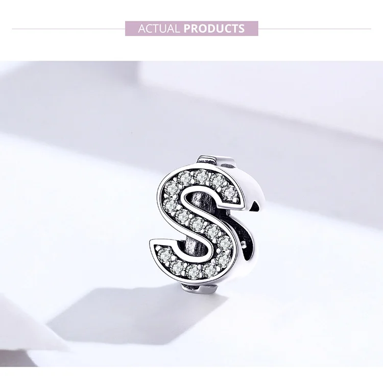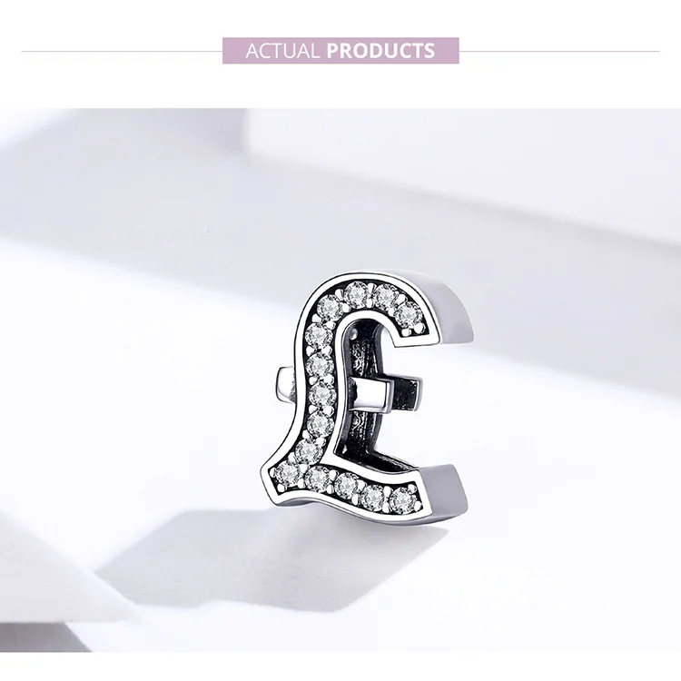 bamoer Currency Symbol Clear CZ Beads for Women Silver Snake Bracelet Dollar Pound and Ruble Beads Female Jewelry