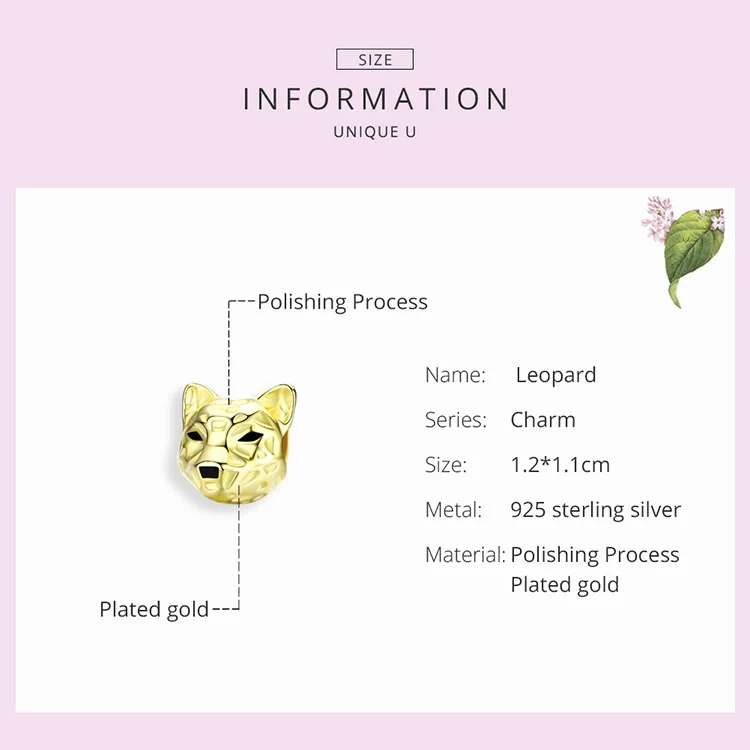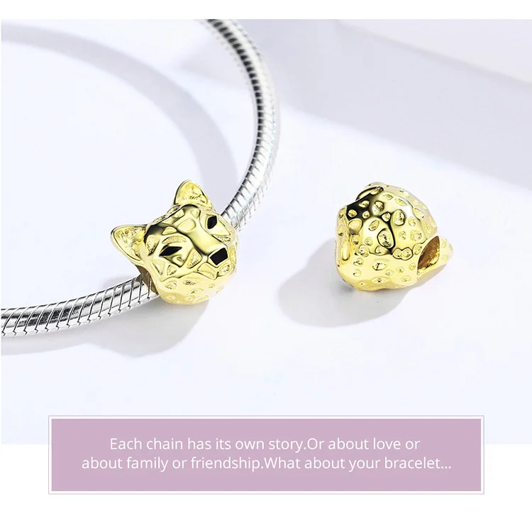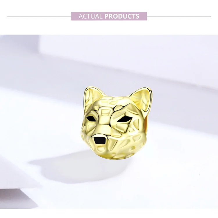 bamoer Gold Color 3D Leopard Beads for Women Original Silver Snake Bracelet Silver 925 Animal Charm for Jewelry Making