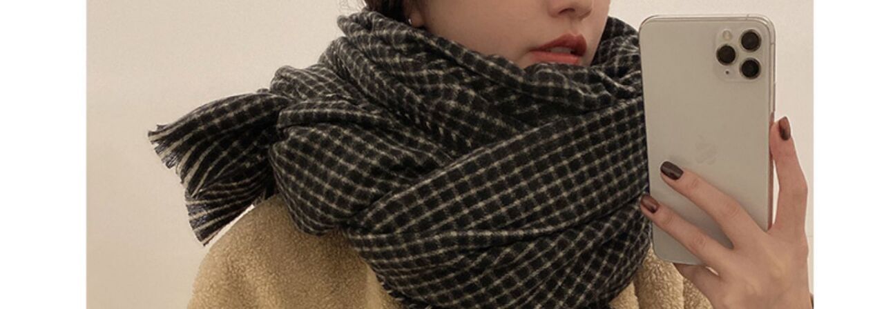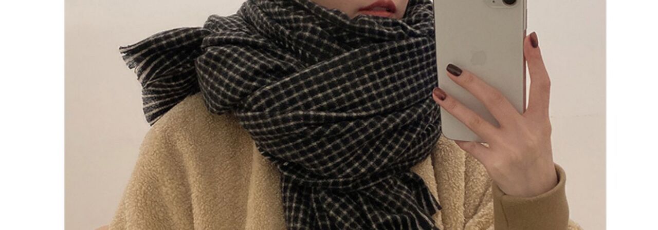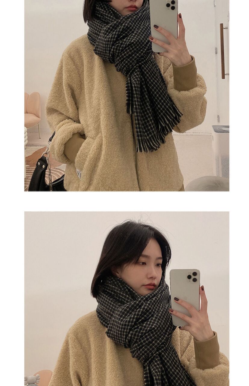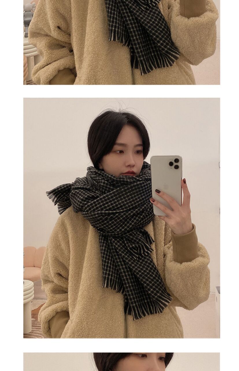 Women’s black plaid scarf Size: 210*90CM Gram weight: 270g Material: imitation cashmere Packing: OPP bag Color: multi-color optional
