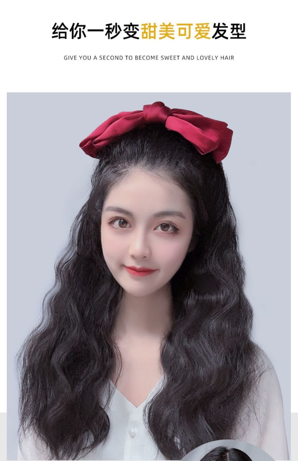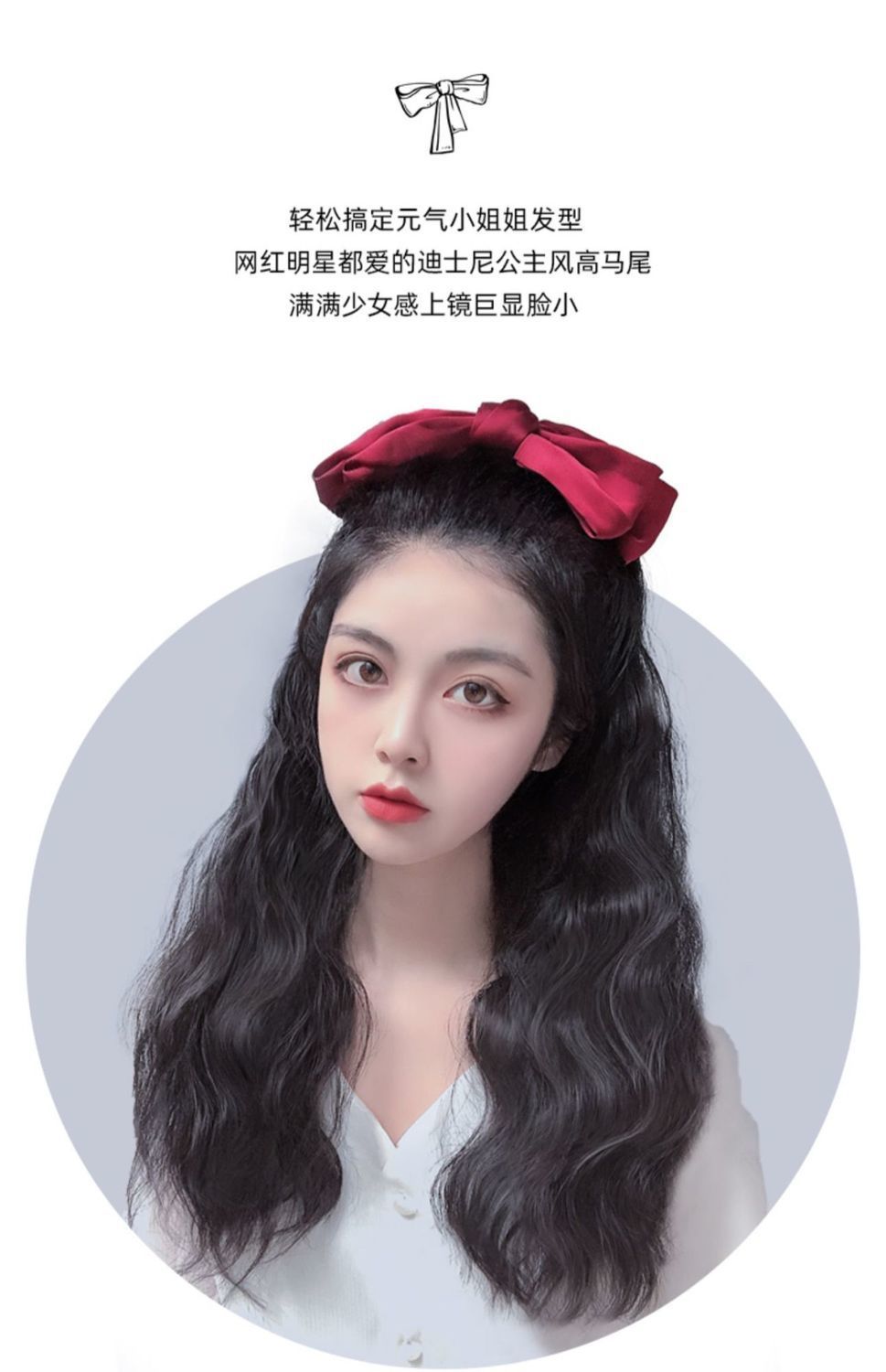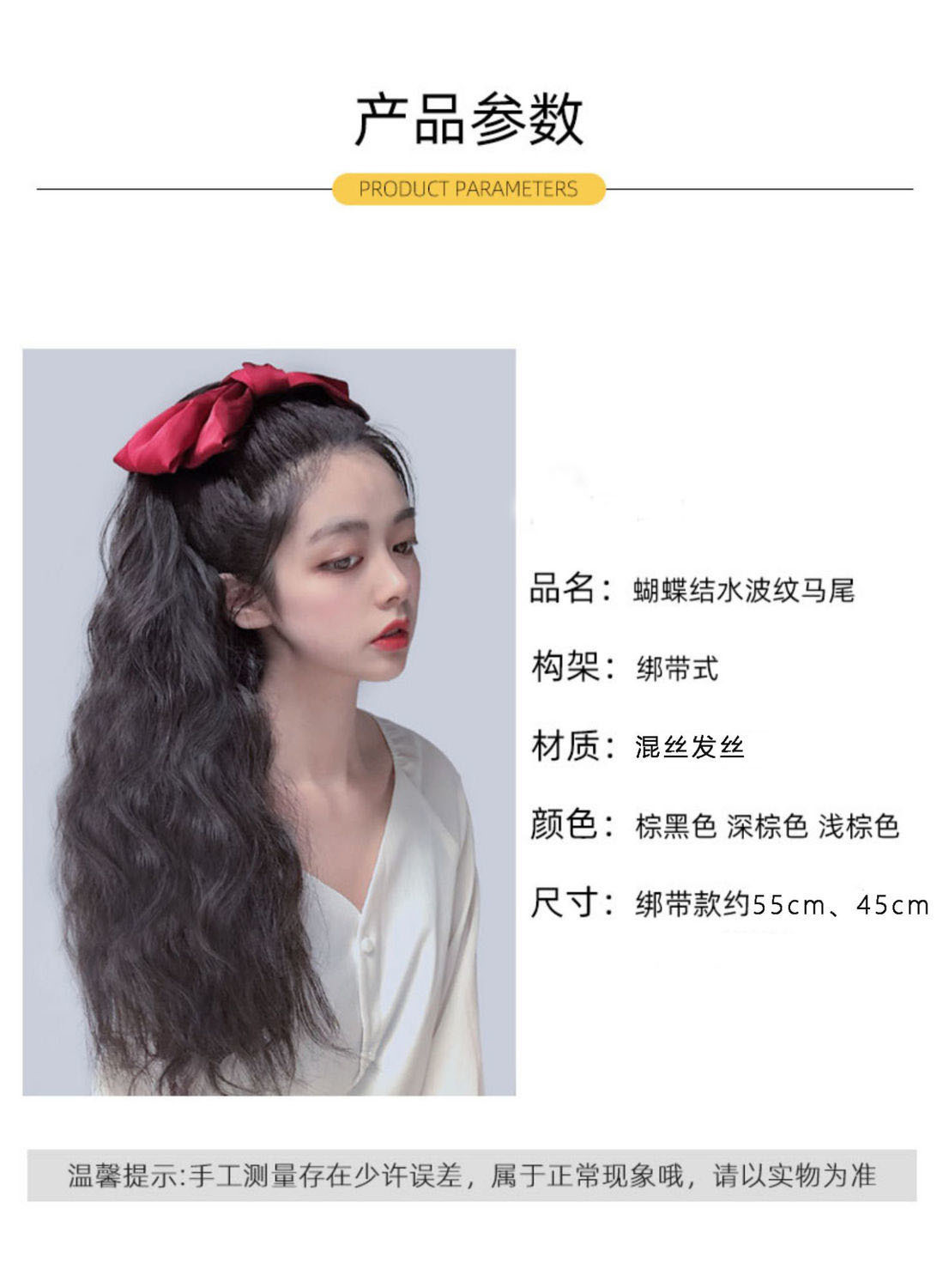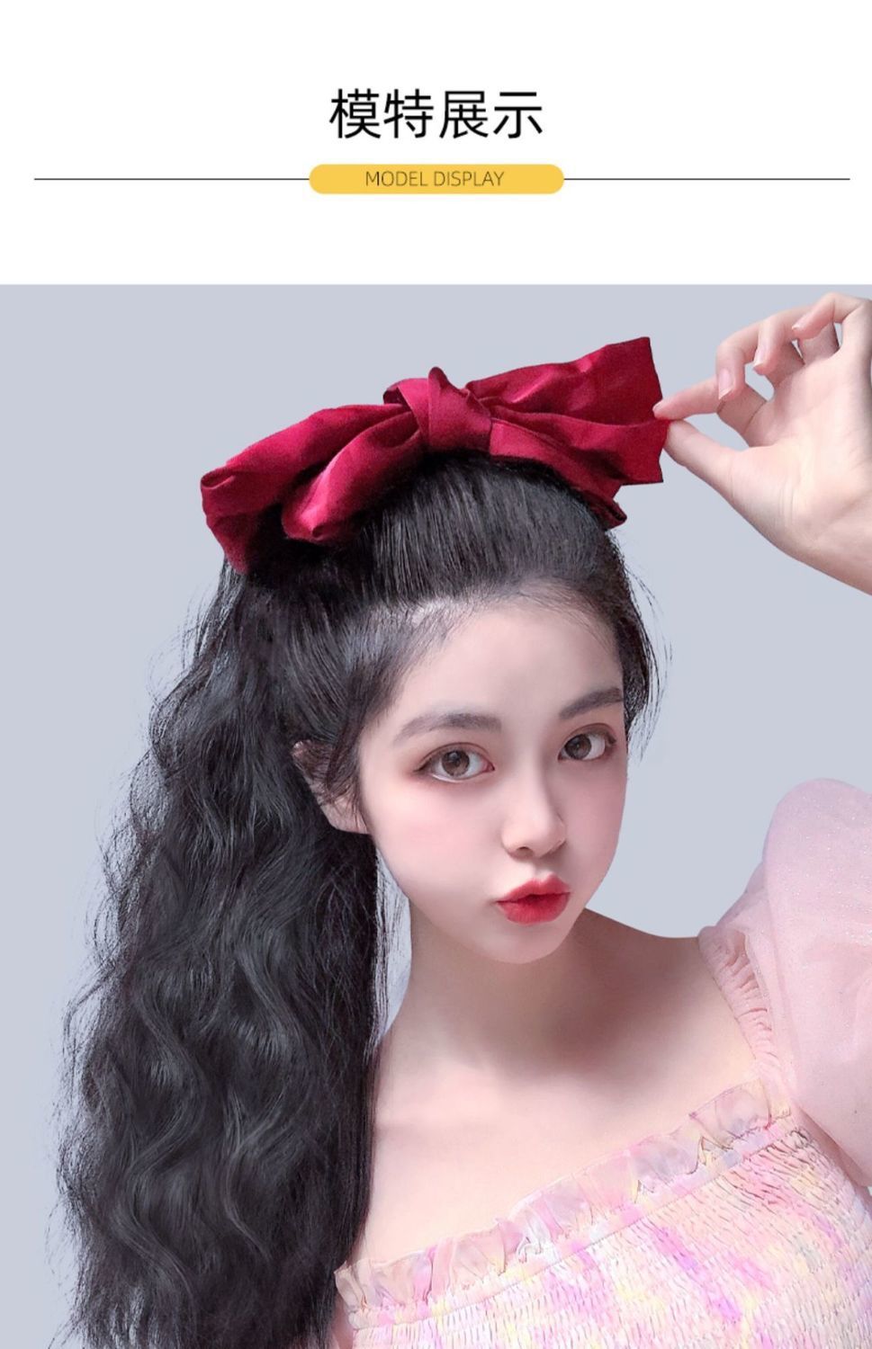 Bow ponytail wig Size: Length 55CM Material: Mixed silk hair Packing: OPP bag Color: mixed color