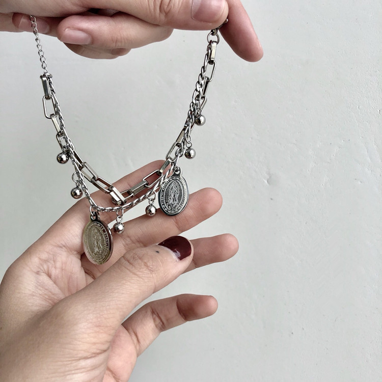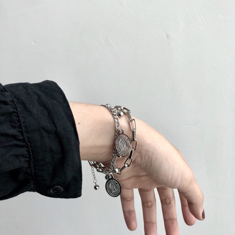 Double Layer Jesus Bracelet Single Chain Layered Bracelet Size: 16CM extension chain about 6.5CM Material: stainless steel Packing: independent packing