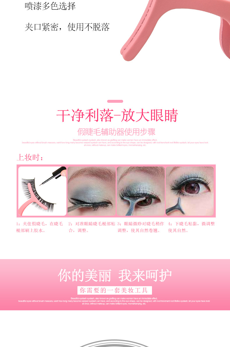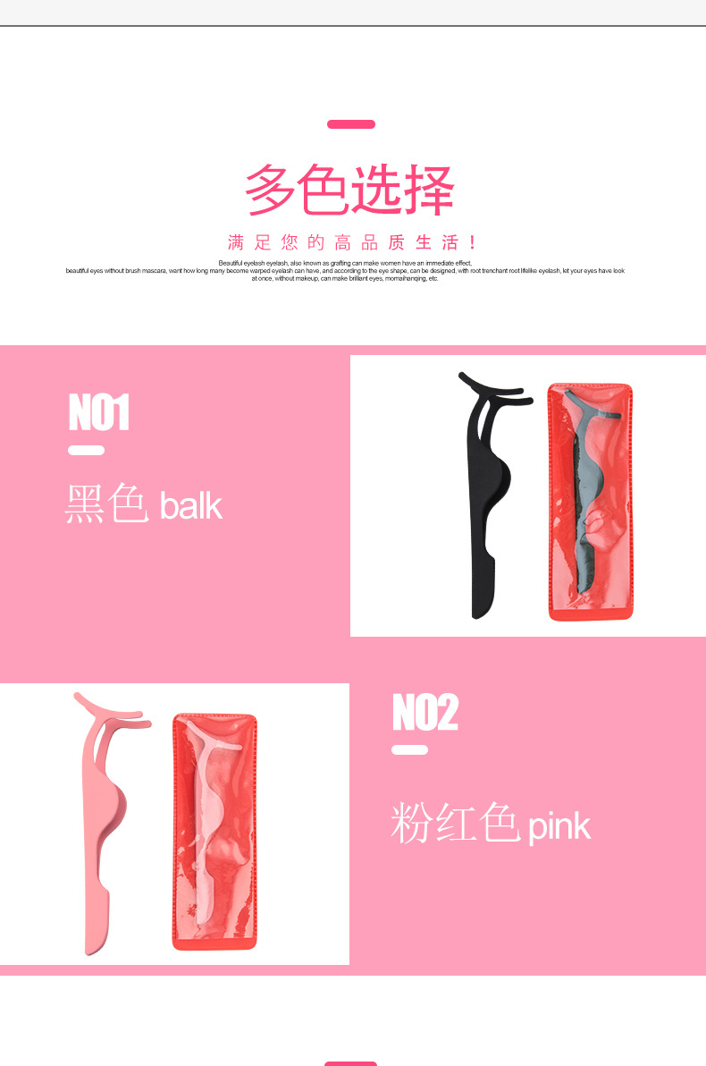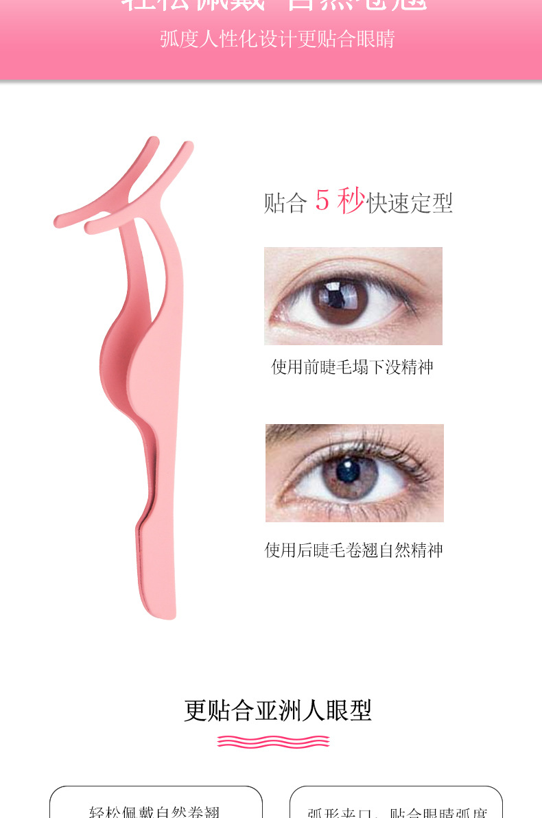 Mini spring stainless steel eyelash curler Size: 9.5*3CM Material: Stainless steel Packing: opp bag Color: black, pink, champagne purple Box gauge: 38*28*32CM QTY: 1000PCS