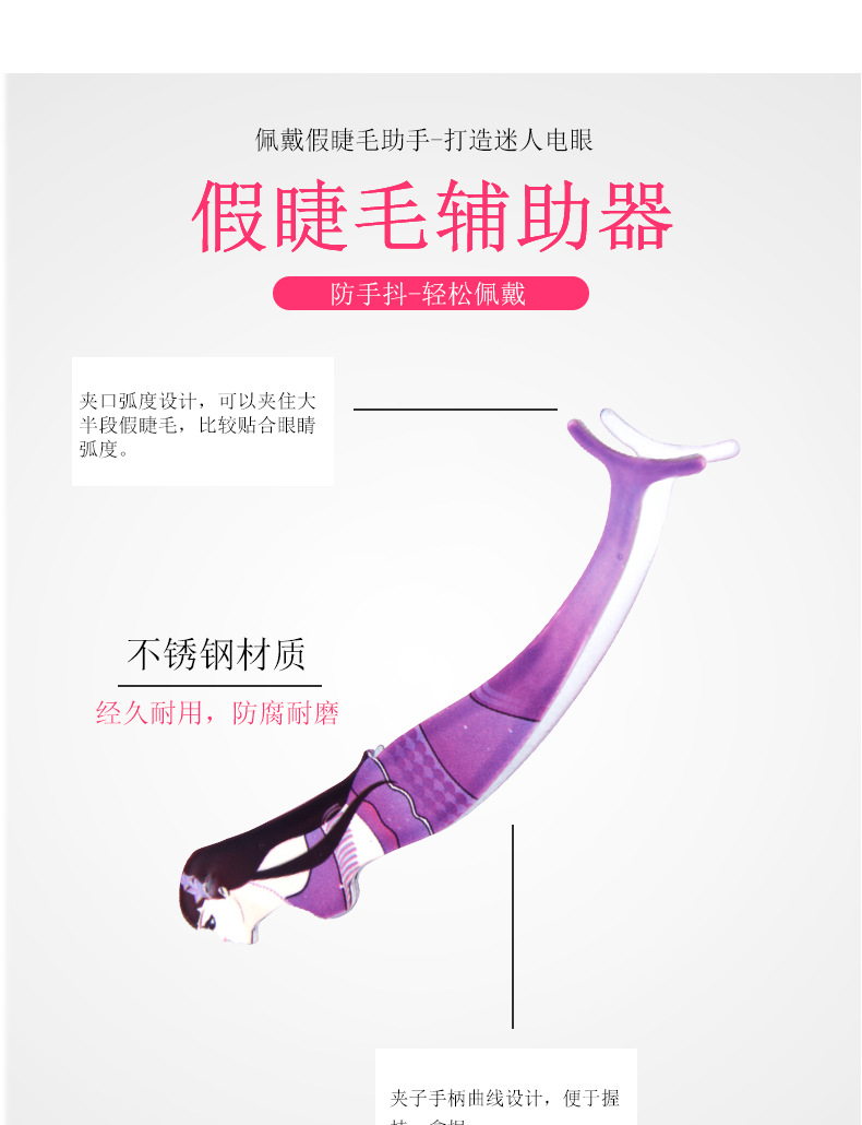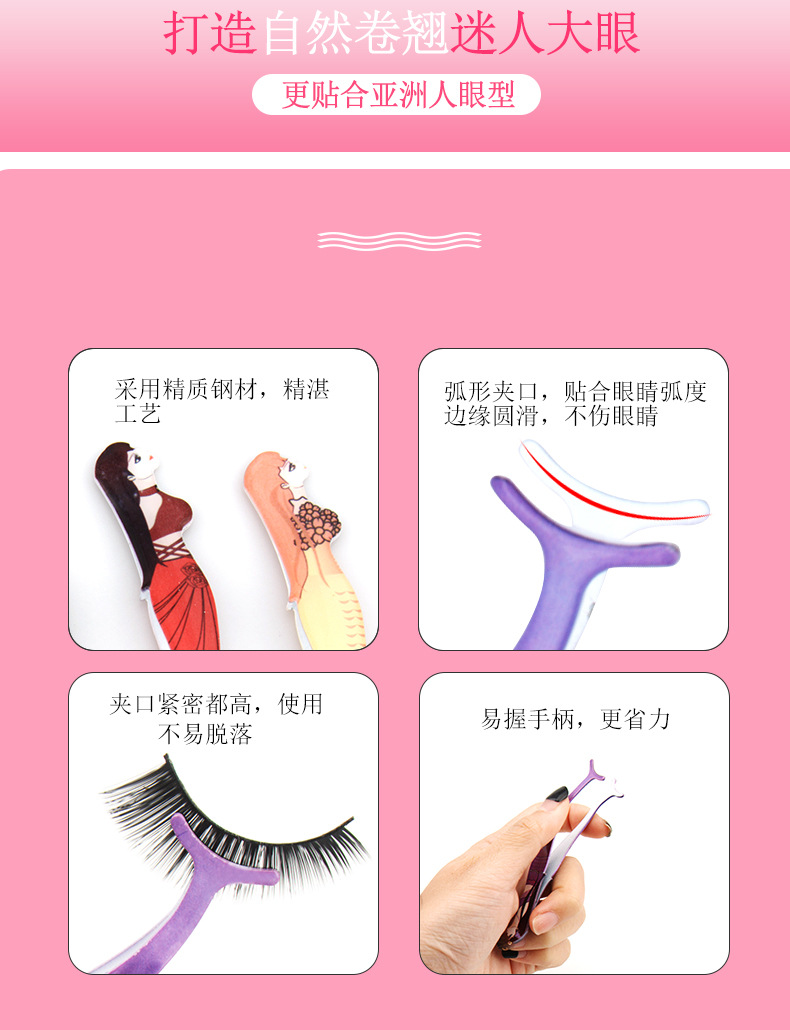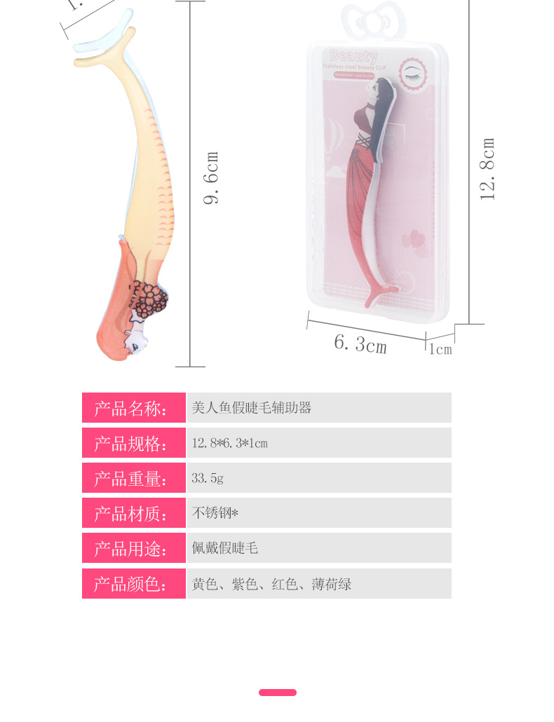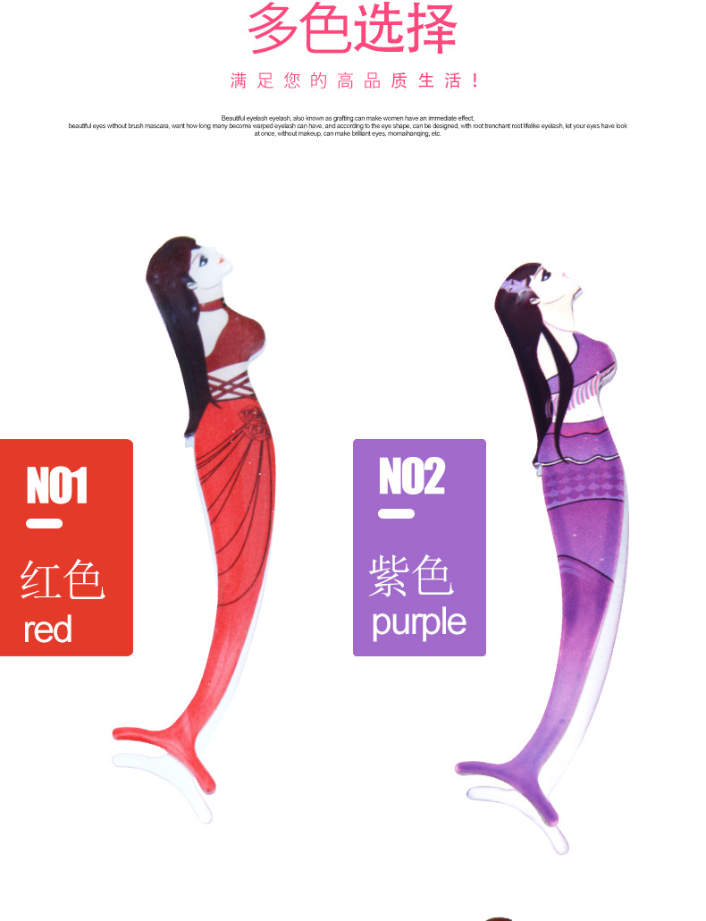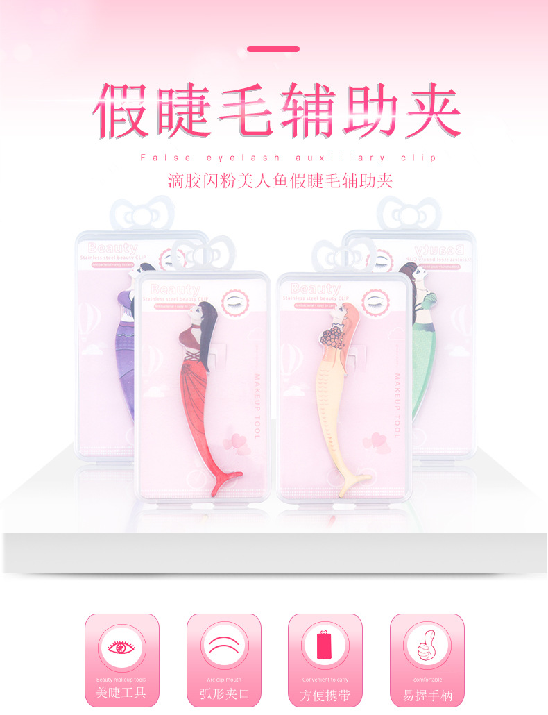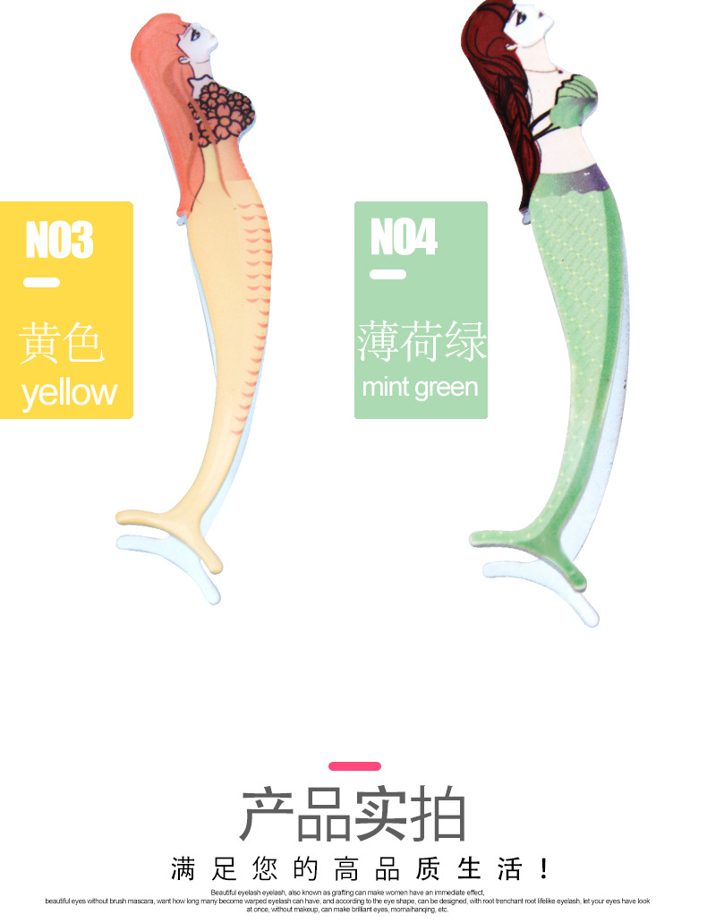 Eyelash curler mermaid pattern Size: 9.6*1.8CM Material: Stainless steel Packing: boxed Color: multi-color optional Box gauge: 48*32*38CM QTY: 400PCS