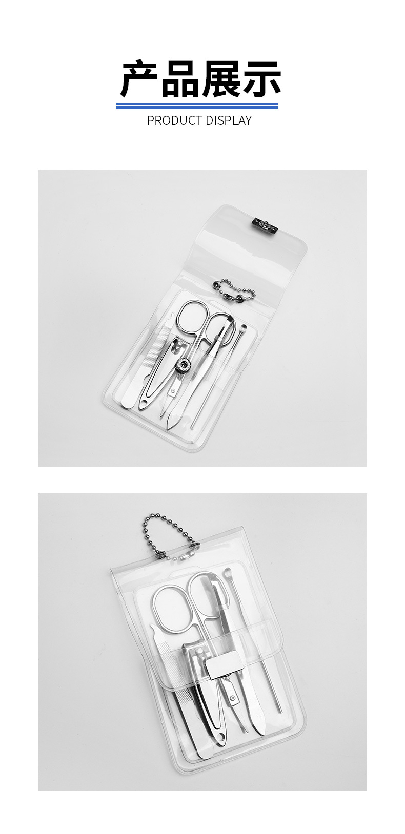 Portable 5-piece set of nail clippers Size: 11.5*8CM Material: Stainless steel Packing: PVC bag Color: transparent, green, pink QTY: 1000PCS