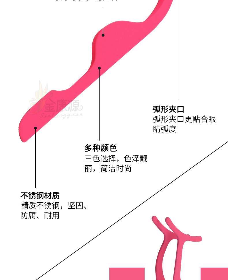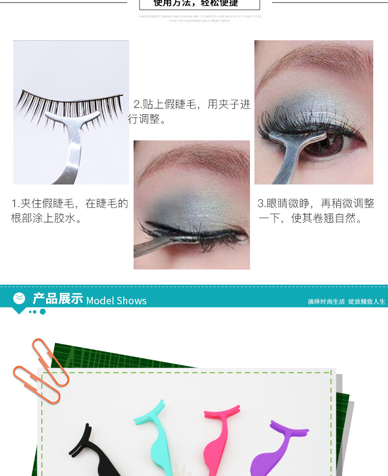Eyelash curler aid Size: 9.6*2.8CM Material: Stainless steel Packing: opp bag Color: multi-color optional Box gauge: 38*28*32CM QTY: 1000PCS