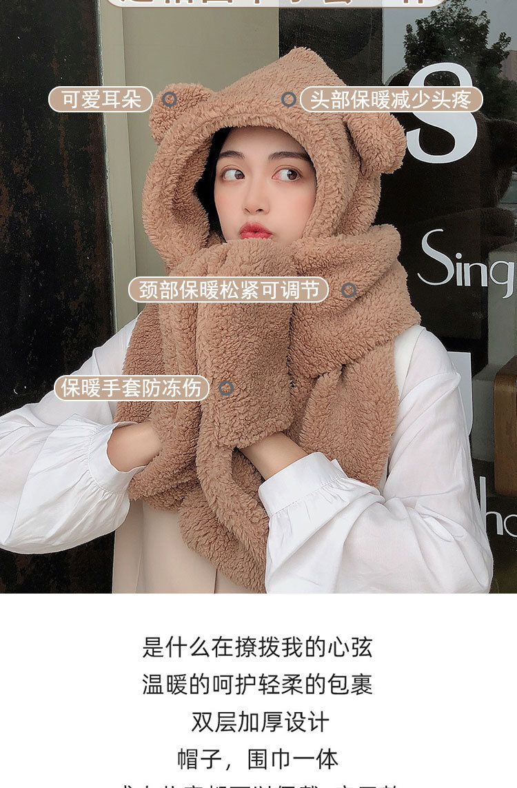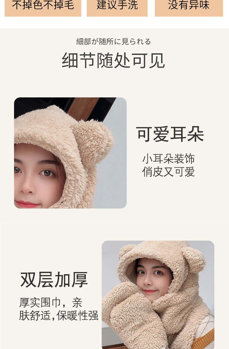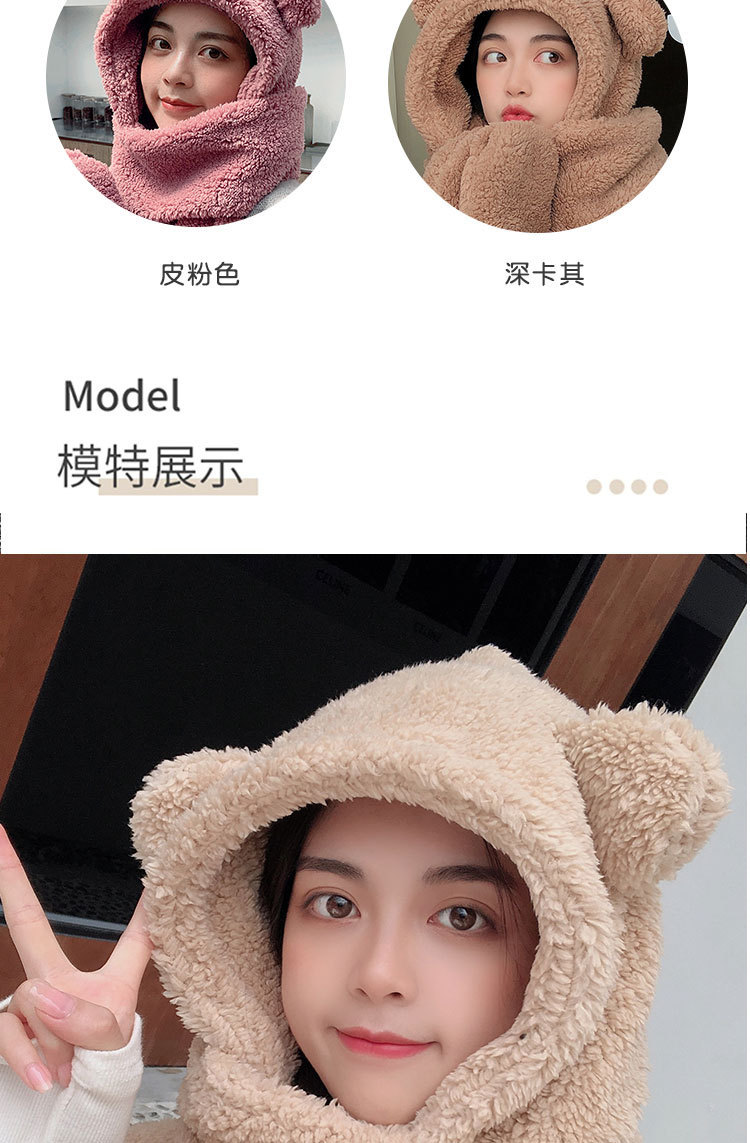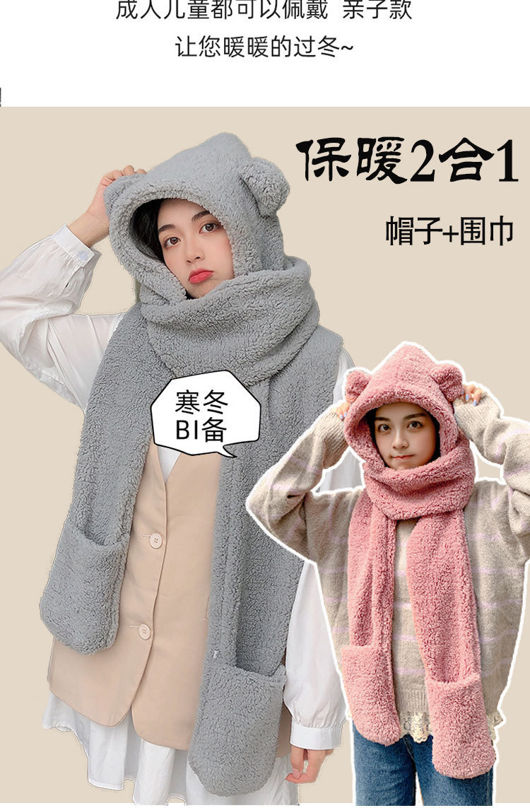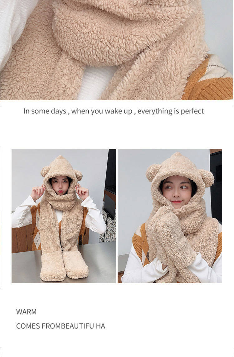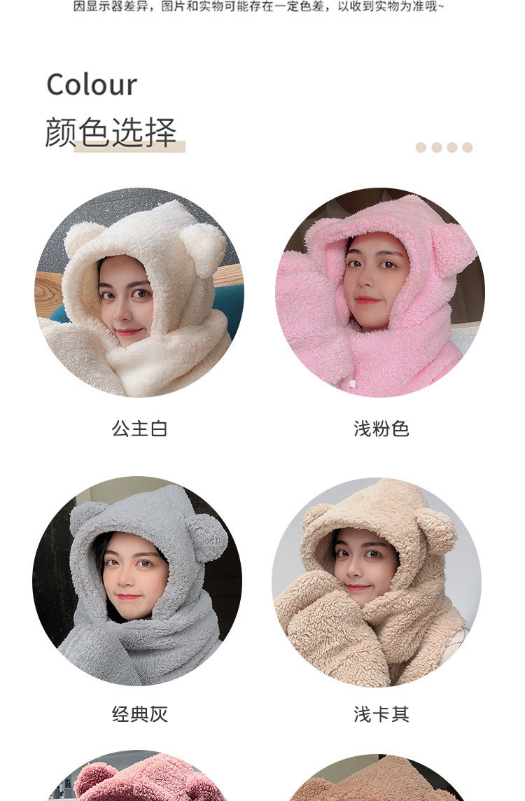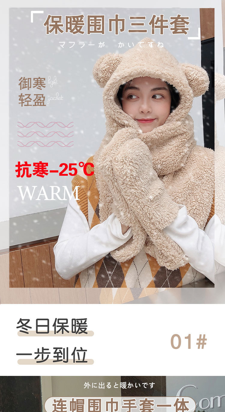 Three-piece cute bear warm earmuff scarf Size: 240*15CM Material: polyester fiber Packing: OPP bag Color: four colors are available Box gauge: 70 *45 *50CM QTY: 60-80PCS
