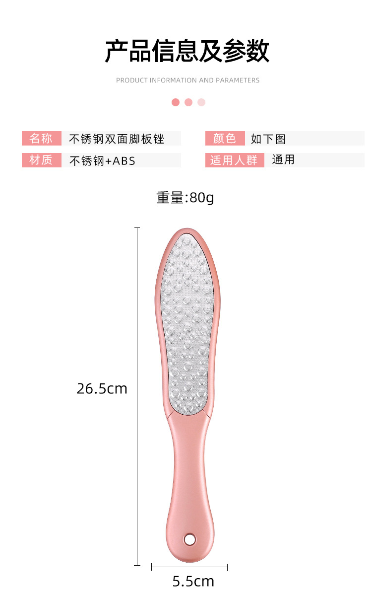 Stainless steel foot board frustrated both sides foot board Size: 26.5*5.5CM (80g) Material: stainless steel + ABS Packing: OPP bag
